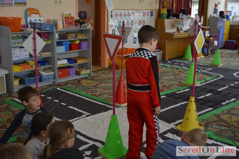 Výučbu dopravnej výchovy pani učiteľky deťom doplnili praktickou časťou za využitia mobilného interiérového dopravného ihriska projektu Bezpečné mesto. Poučení, ako sa bezpečne správať v cestnej premávke, znalí dopravných značiek či bezpečnostných reflexných prvkov s „detským vodičákom“ vo vrecku sa pustili na jazdu po dopravnom ihrisku pripravenom v triede. Priamo na mieste sme sa presvedčili o tom, že detičky sú dostatočne poučené a pripravené, nakoľko ku žiadnej "kolízii" v premávke nedošlo :-)
