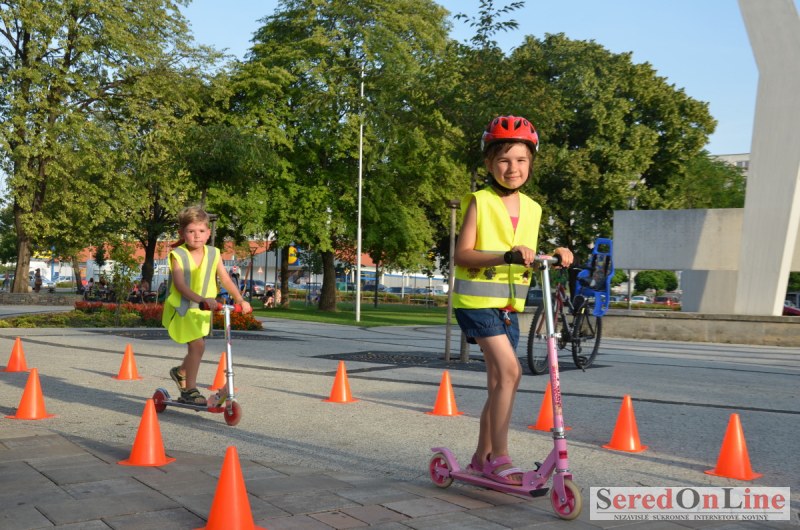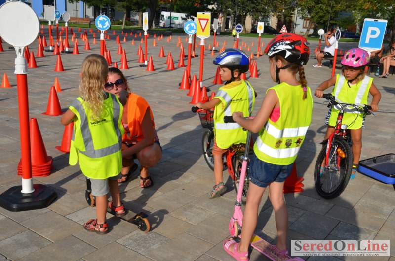 Sereď | Ani 40 stupňové dnešné teploty neodradili niekoľko rodičov s malými deťmi od návštevy mobilného dopravného ihriska, ktoré dnes pred 18.00 hod. bolo k dispozícii na Námestí Slobody v Seredi. Zmenšená verzia tohto pre deti mimoriadne atraktívneho nielen zábavného ale aj vzdelávacieho projektu bola použitá z dôvodu nulového záujmu zo strany rodičov pomôcť pri realizácii projektu pre ich vlastné deti. Treba povedať, že ihrisko, ktoré majú k dispozícii deti z nášho mesta je svojim obsahom, modernosťou a funkčnosťou unikátom, ktorý zatiaľ samotní rodičia akosi nevedia alebo nechcú zobrať do úvahy. Naozaj si je potrebné uvedomiť, že pokiaľ sa o vlastné deti v čase voľna nepostaráme my rodičia, postarajú sa o ne iní a dá sa predpokladať, že na stránkach SOL budú aktivity mnohých z nich namiesto v rubrike prevencia, v rubrike krimi správy. Do dnešného rozkladania a skladania bezpečnostných prvkov sa napriek výzve zapojila iba Lucia Porubská s manželom, Erik Štefánek, pani Javorová so synom a Karin Jantošková so synom.