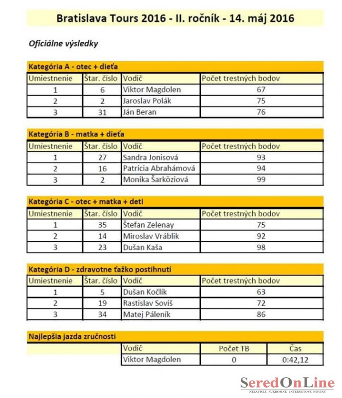 Dopravno-výchovné podujatie pre rodičov a deti sa konalo 14. mája 2016. Zorganizoval ho Ústredný automotoklub Slovenská republika za účinnej pomoci ďalších organizácií. Súťažilo sa celkom v 4. kategóriách. Víťazi jednotlivých kategórií si odniesli krásne veľké poháre, ale odmenou pre všetkých boli zážitky z príjemne a užitočne strávenej jednej májovej soboty.