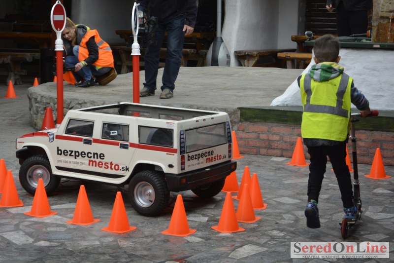Súčasťou súťažného dňa, ale aj významnou aktivitou v rámci prevencie úrazov detí na cestách bolo detského dopravné mobilné ihrisko projektu Bezpečné mesto, ktoré sme do Bratislavy priniesli. Pôvodný úmysel bol rozložiť na vonkajšom priestranstve väčšiu verziu ihriska s 30-timi z 50-tich možných dopravných značiek, no daždivé počasie spôsobilo malú improvizáciu. V čiastočne prestrešených priestoroch reštaurácie sme rozložili zmenšenú verziu mobilného ihriska, ktorá svoju úlohu splnila. Na druhej strane počasie spôsobilo nielen prekážku, ale aj získanie dôkazu, že mobilné dopravné ihrisko nášho projektu má význam a svoje opodstatnenie práve aj pre takéto situácie, ktoré môžu nastať kedykoľvek. Ihrisko dokážeme prispôsobiť viacmenej na akýkoľvek priestor. Podmienkou je rovný podklad, čo znamená kvalitný betón, asfalt alebo dlažbu.