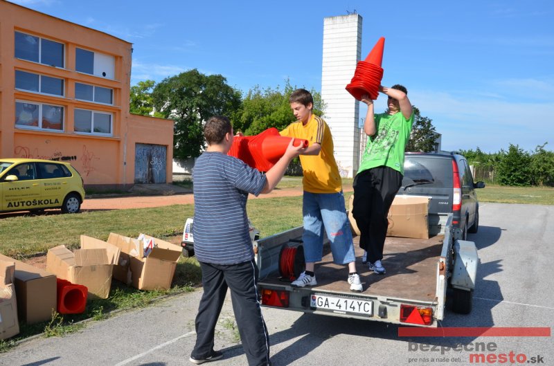 Program bol pre deti pripravený v spolupráci s autoškolou HÍLEK a projektom "Bezpečné mesto" (MajkoDesignStudio). Ďakujeme za pomoc štyrom šikovným deviatakom, bez ktorých by rozloženie a zbalenie prenosného dopravného ihriska trvalo podstatne dlhšie.