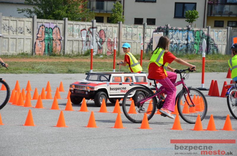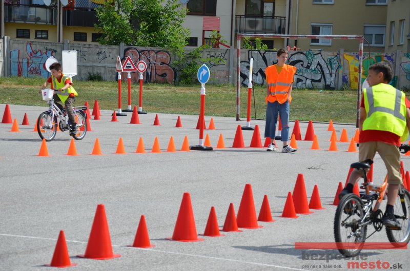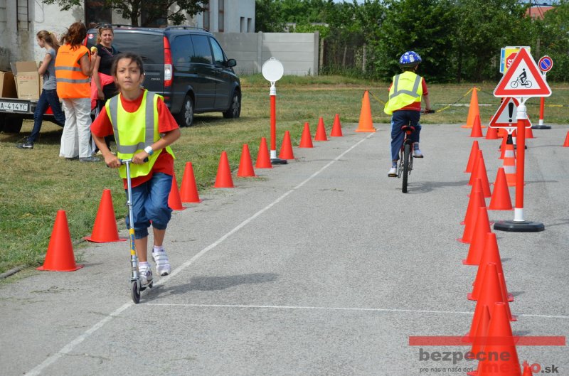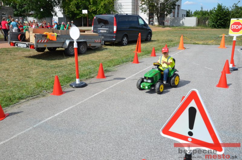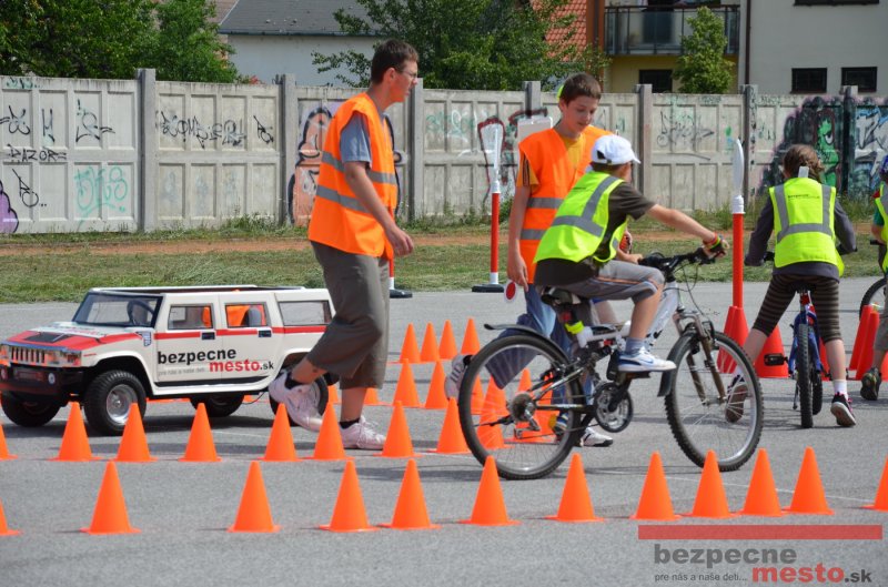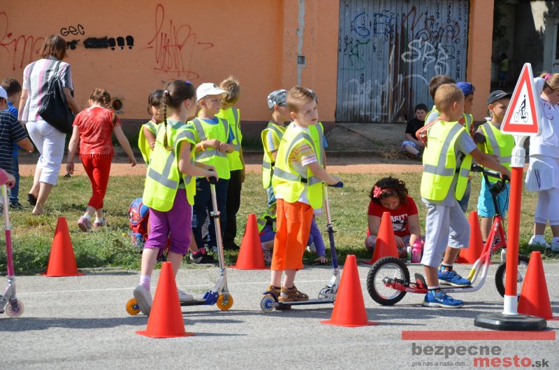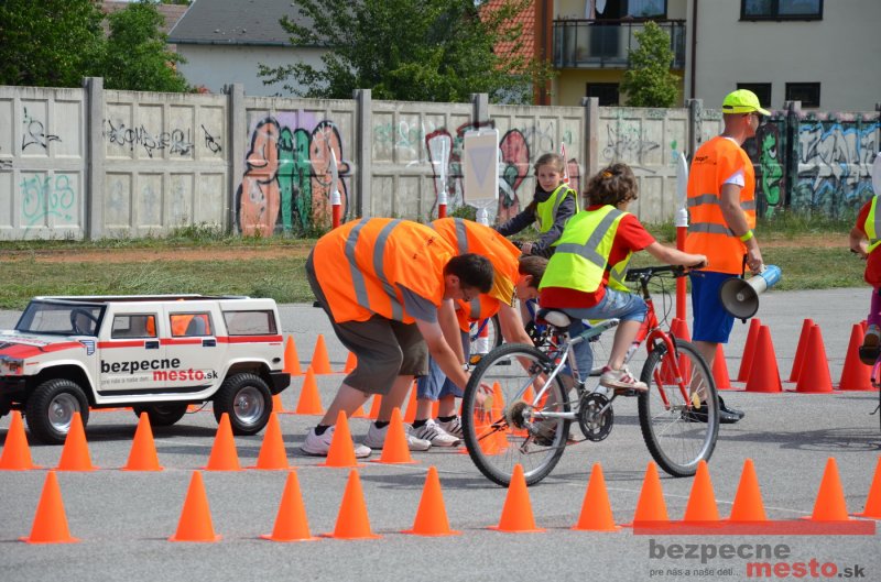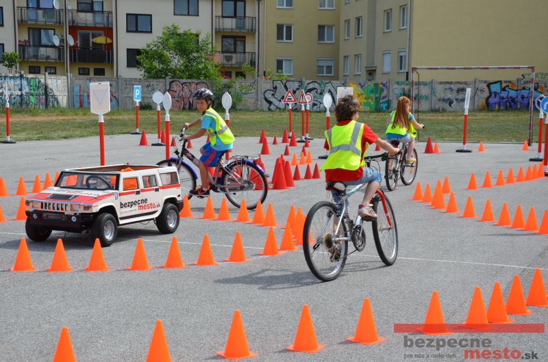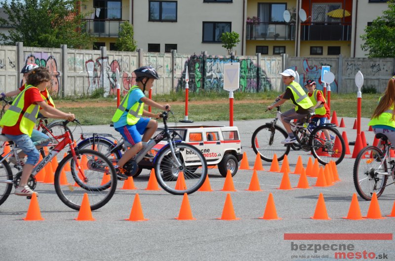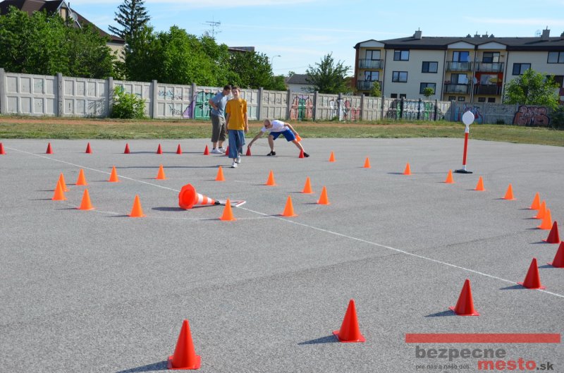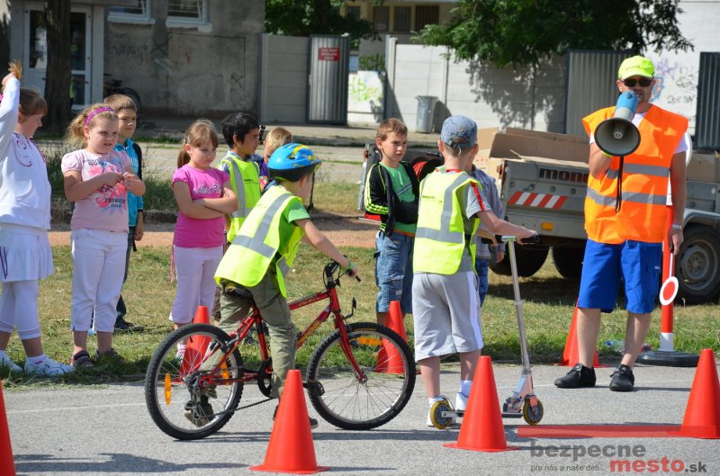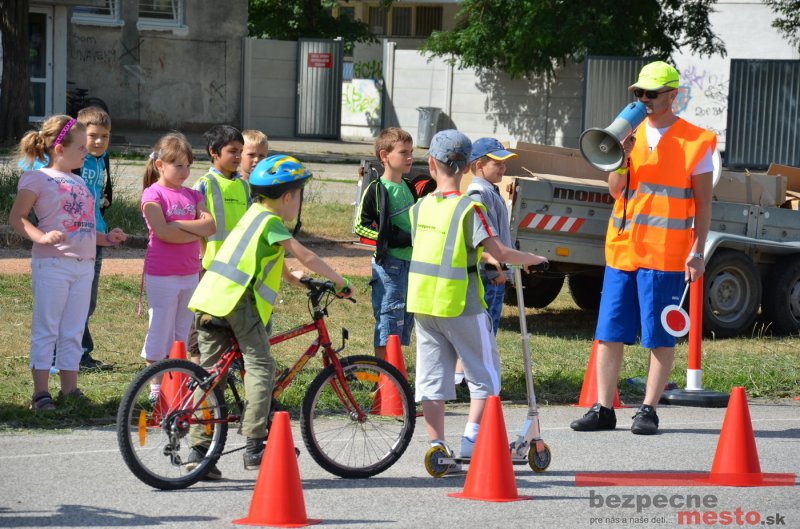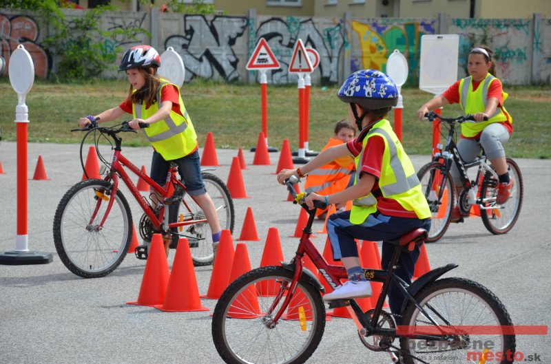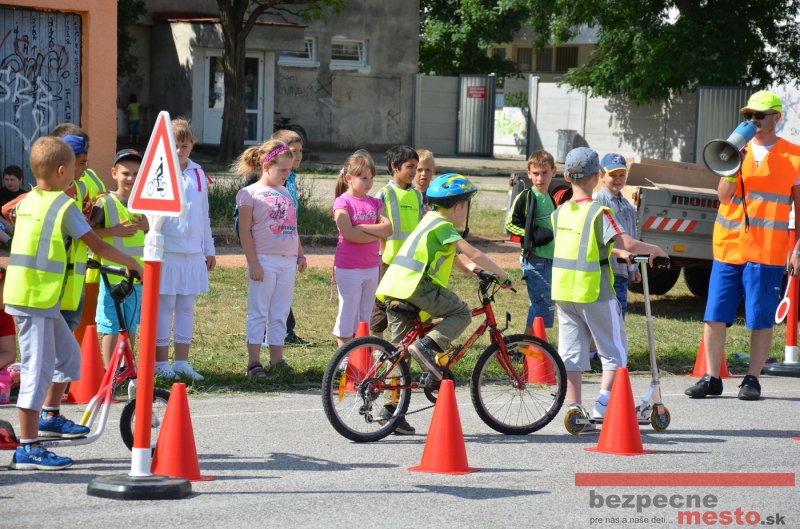 Na školskom ihrisku hneď od ranných hodín bolo rozložené prenosné dopravné ihrisko z projektu "Bezpečné mesto" , na ktorom deti na prinesených bicyklíkoch a kolobežkách pod odborným dohľadom inštruktora autoškoly HÍLEK odborne deti učil, ako sa majú bezpečne pohybovať po cestných komunikáciách.