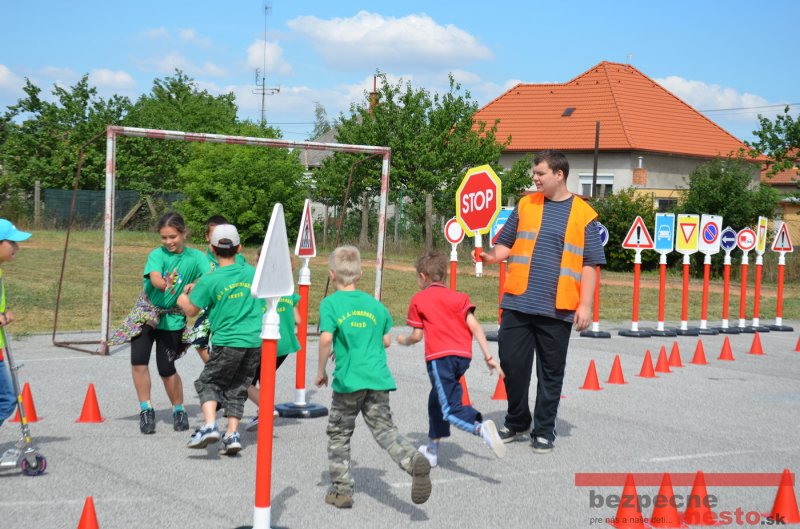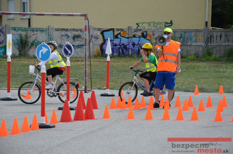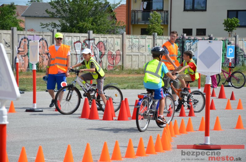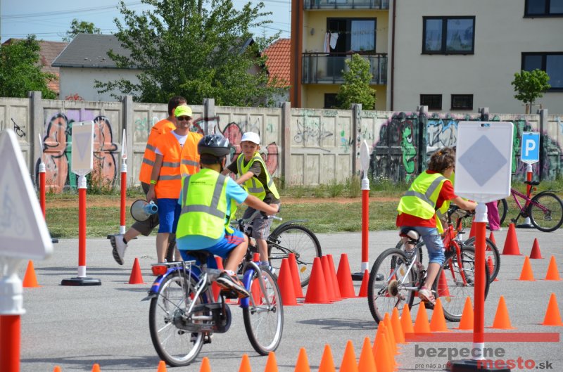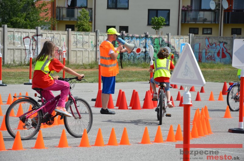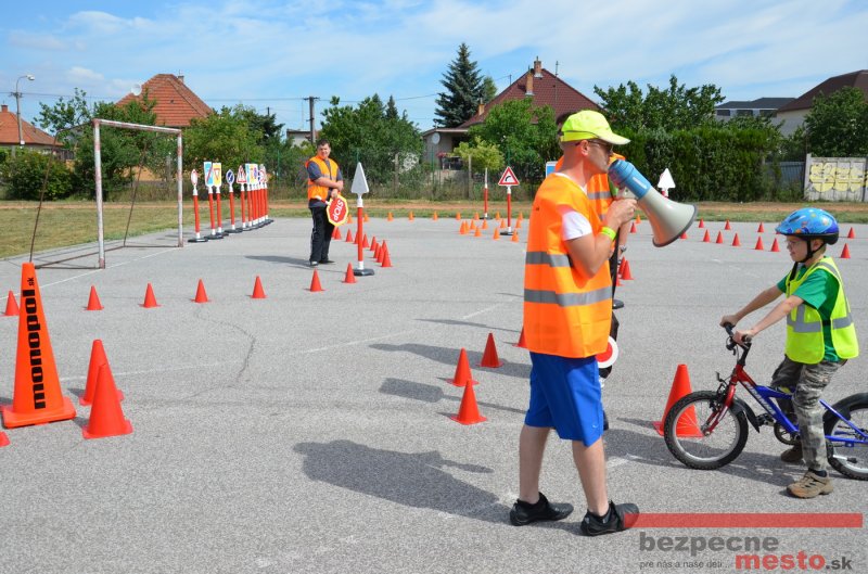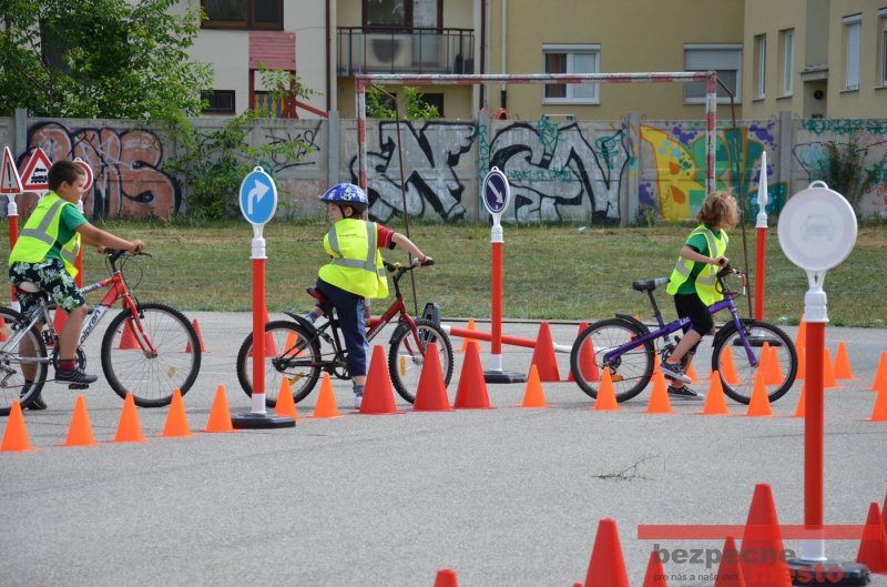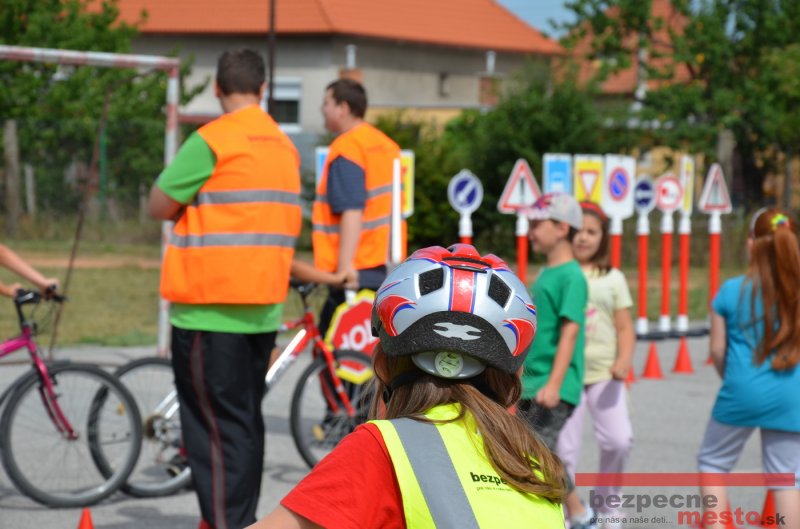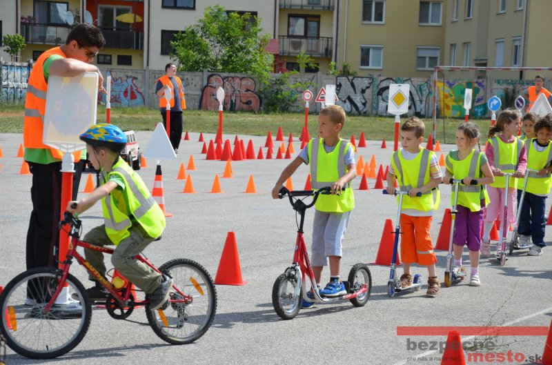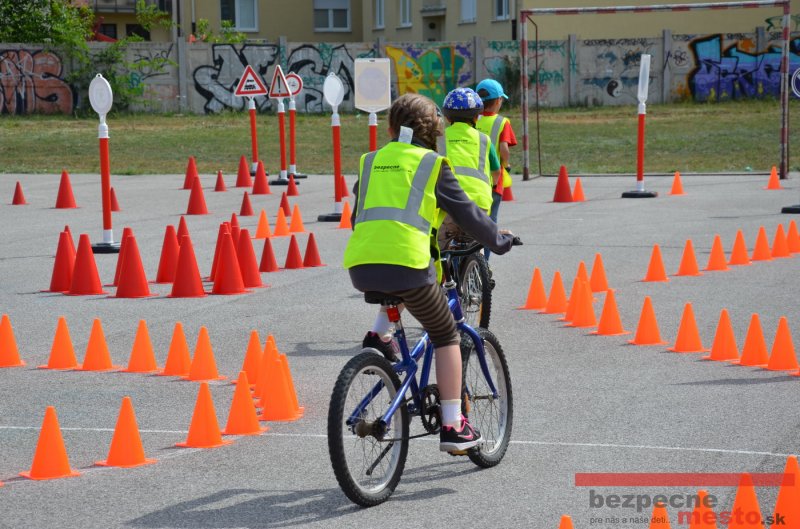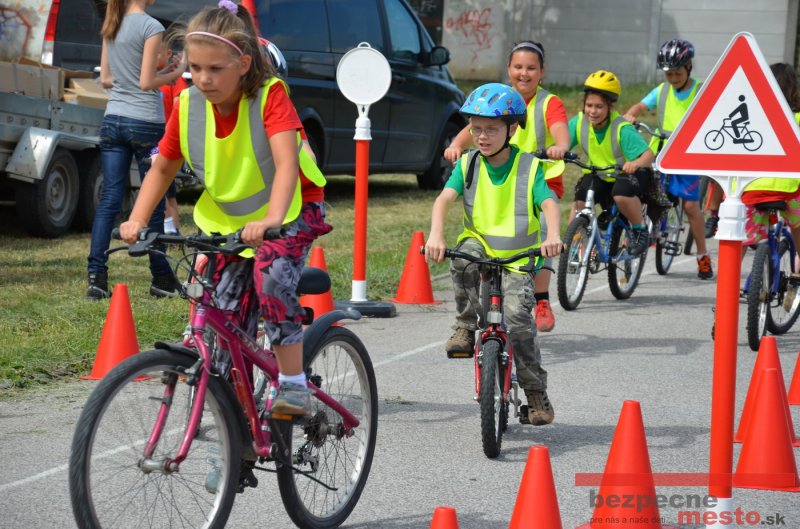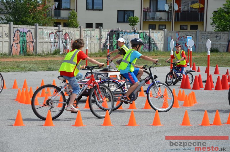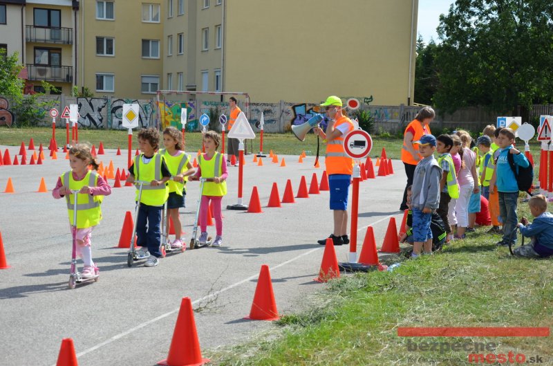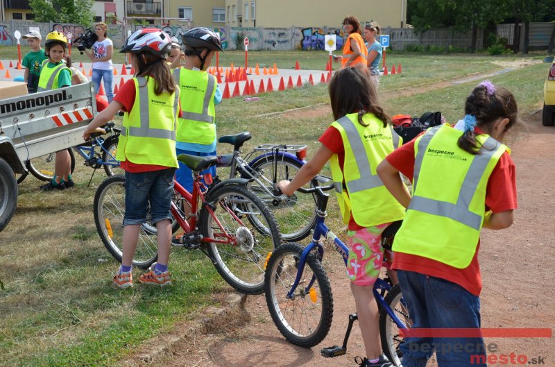 Na školskom ihrisku hneď od ranných hodín bolo rozložené prenosné dopravné ihrisko z projektu "Bezpečné mesto" , na ktorom deti na prinesených bicyklíkoch a kolobežkách pod odborným dohľadom inštruktora autoškoly HÍLEK odborne deti učil, ako sa majú bezpečne pohybovať po cestných komunikáciách.