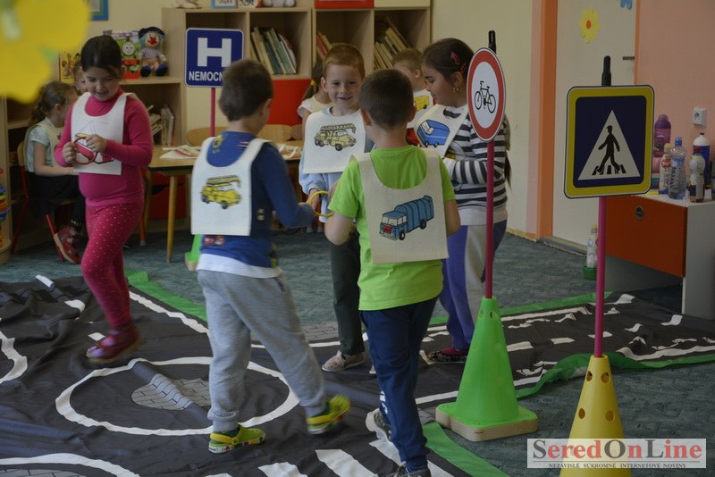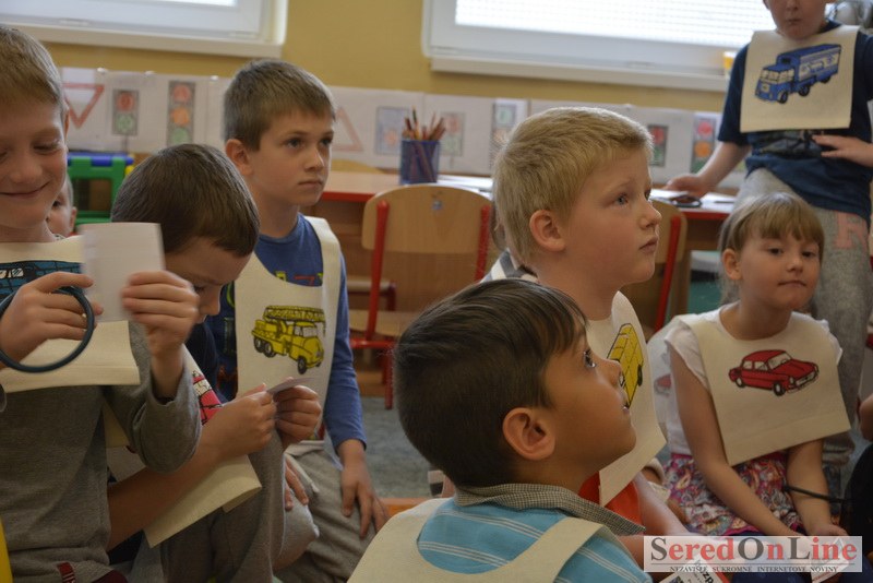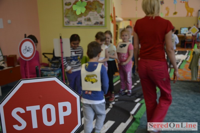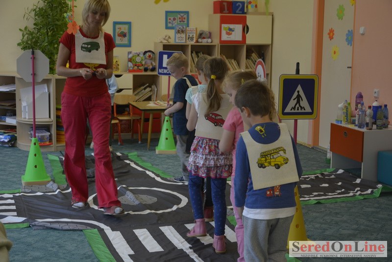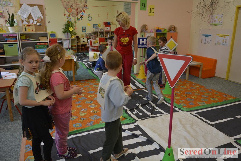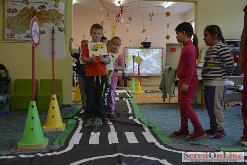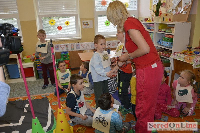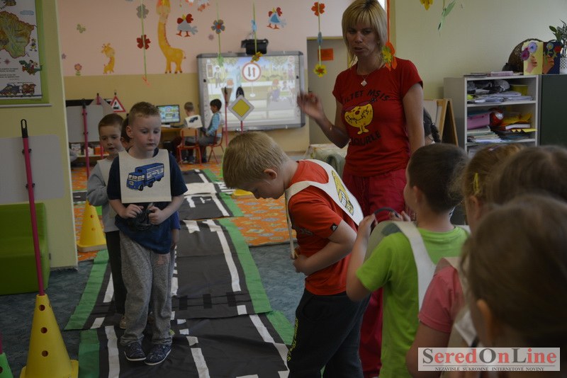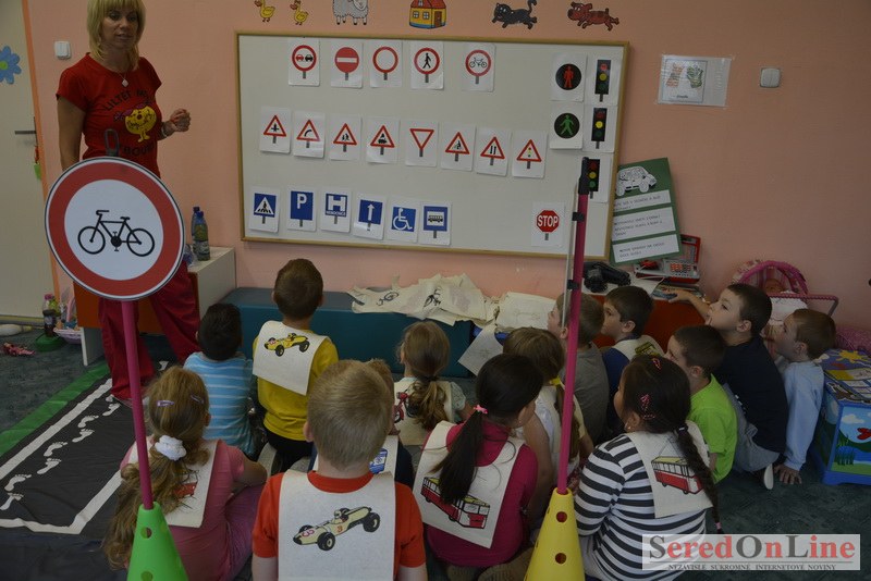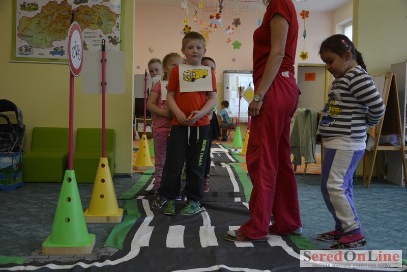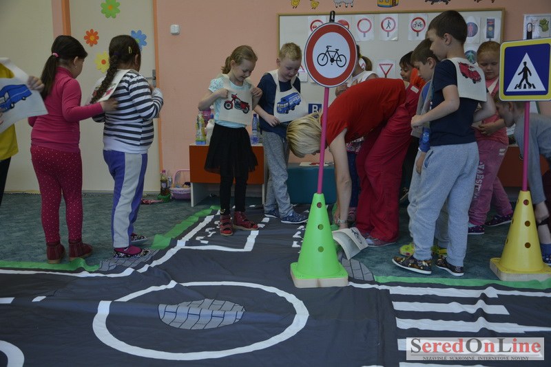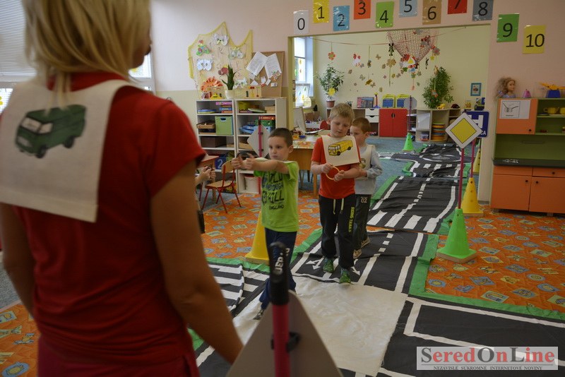 Sereď / V dnešné predpoludnie bolo mobilné dopravné ihrisko projektu Bezpečné mesto skutočne naplno využité. Dopravnú výchovu mali možnosť na ňom absolvovať aj preškoláci materskej školy Komenského v budove "B". O tom, že dopravné značky nie sú im cudzie nás presvedčili hneď v úvode. Za pomoci pani učiteľky si znalosti o bezpečnom správaní na cestách zopakovali v teoretickej časti. Správne odpovede na otázky pani učiteľky len tak "sypali ako z rukáva". Potom mohla nasledovať aj jazda v plnej premávke po cestičkách mobilného dopravného ihriska. Tu si precvičili dopravné predpisy, ktoré musia dodržiavať ako chodci tak i dopravné prostriedky. Samozrejme ako správni vodiči nesmú jazdiť bez vodičáka, preto aj oni dostali "detské vodičáky" so svojim menom od projektu Bezpečné mesto.