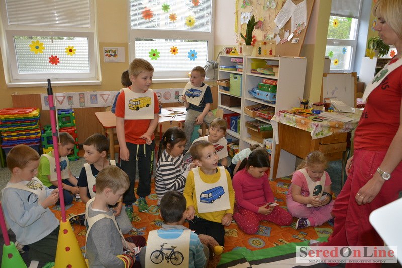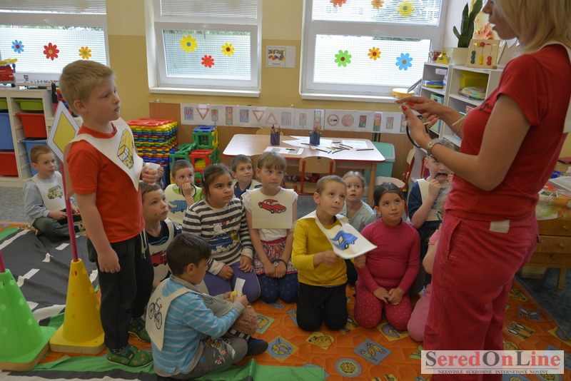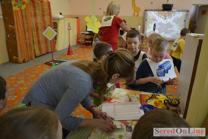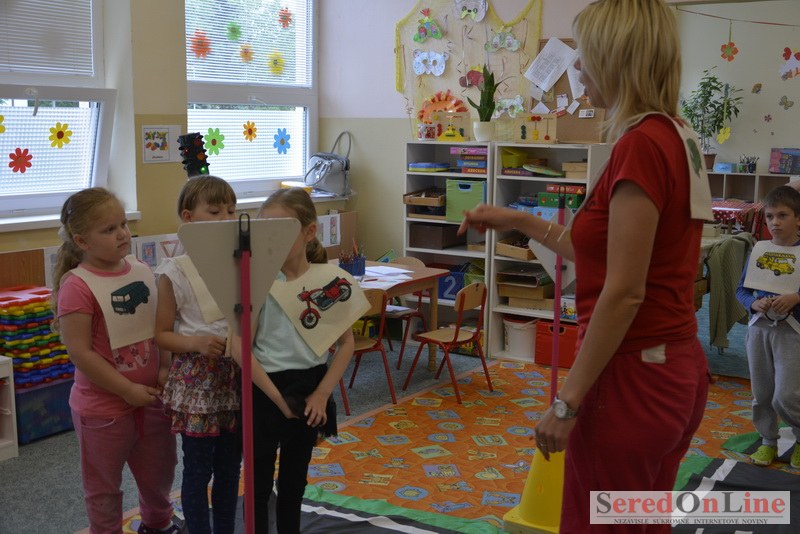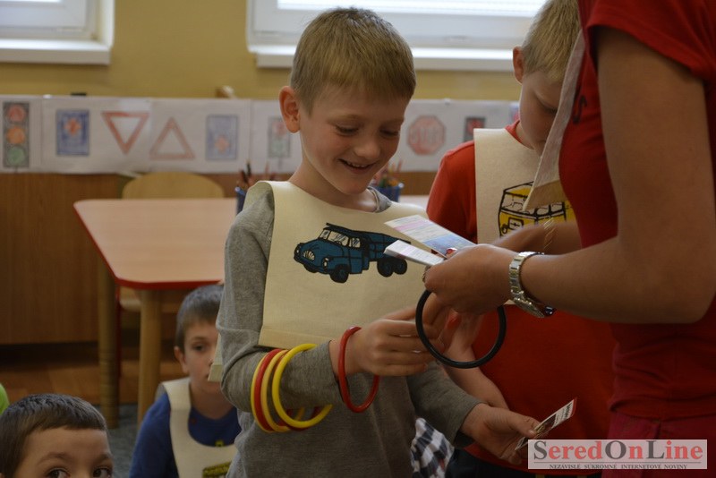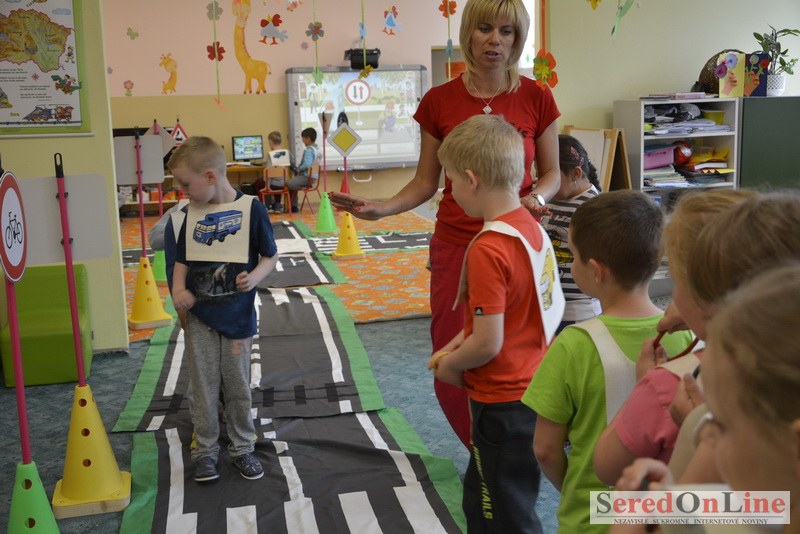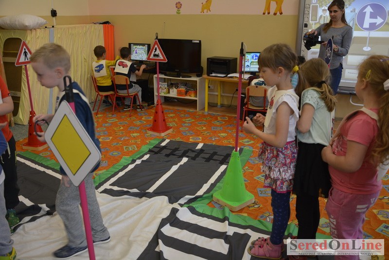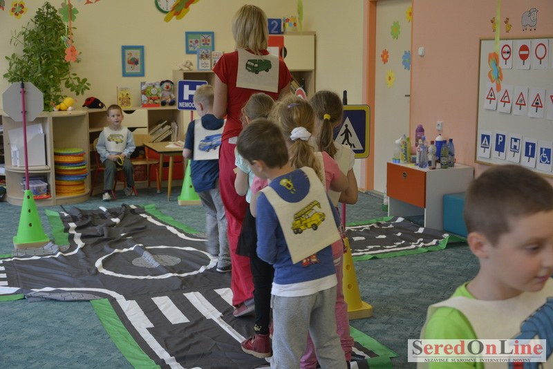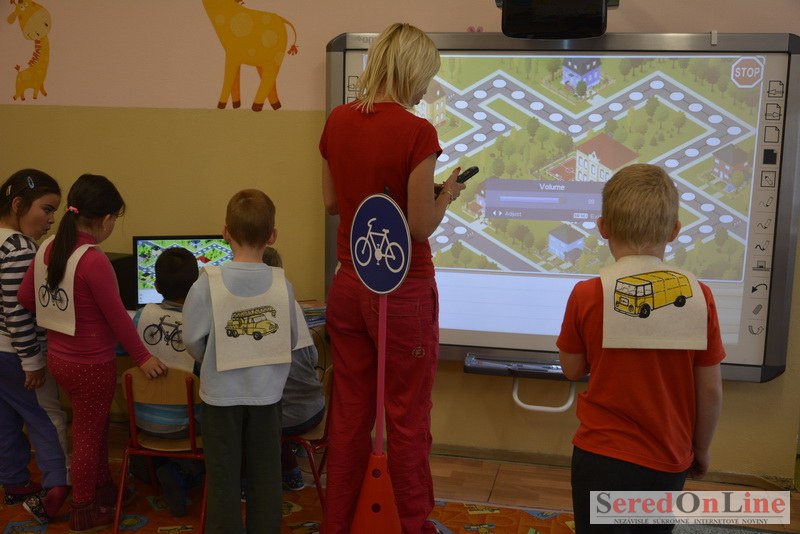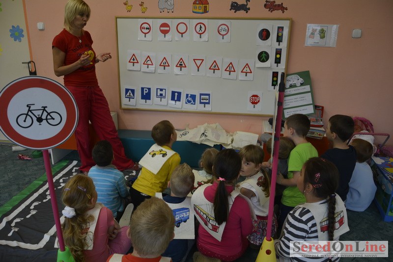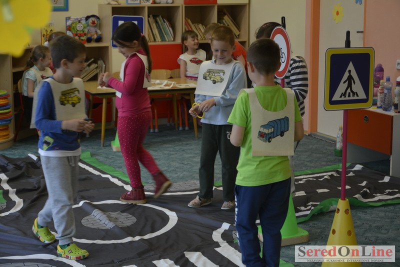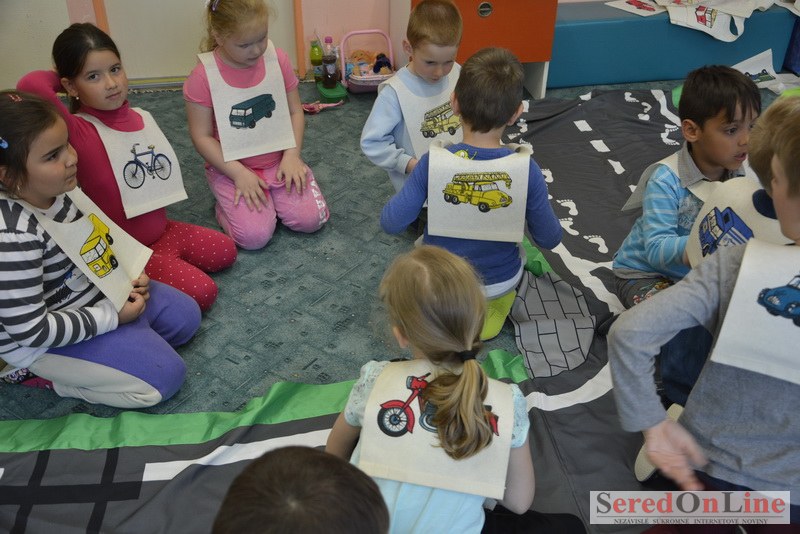 Sereď / V dnešné predpoludnie bolo mobilné dopravné ihrisko projektu Bezpečné mesto skutočne naplno využité. Dopravnú výchovu mali možnosť na ňom absolvovať aj preškoláci materskej školy Komenského v budove "B". O tom, že dopravné značky nie sú im cudzie nás presvedčili hneď v úvode. Za pomoci pani učiteľky si znalosti o bezpečnom správaní na cestách zopakovali v teoretickej časti. Správne odpovede na otázky pani učiteľky len tak "sypali ako z rukáva". Potom mohla nasledovať aj jazda v plnej premávke po cestičkách mobilného dopravného ihriska. Tu si precvičili dopravné predpisy, ktoré musia dodržiavať ako chodci tak i dopravné prostriedky. Samozrejme ako správni vodiči nesmú jazdiť bez vodičáka, preto aj oni dostali "detské vodičáky" so svojim menom od projektu Bezpečné mesto.