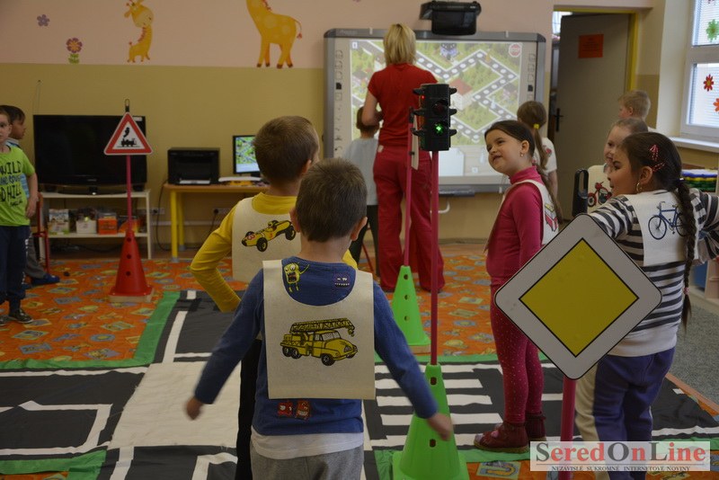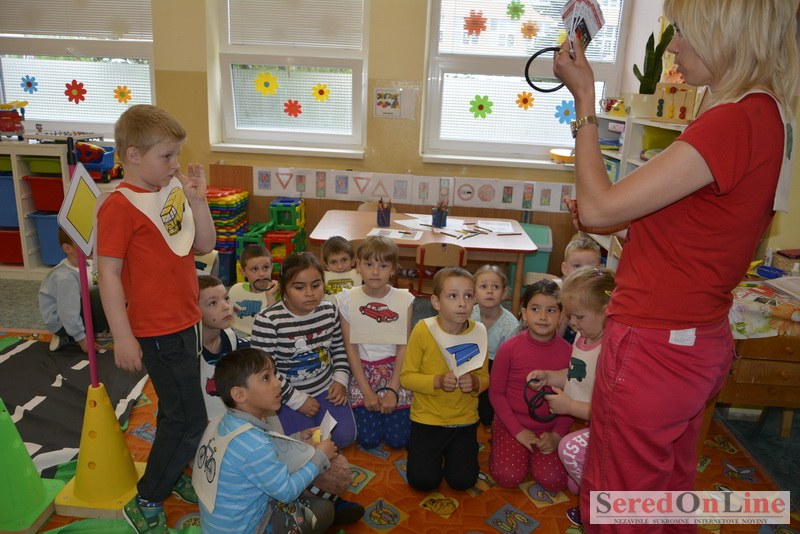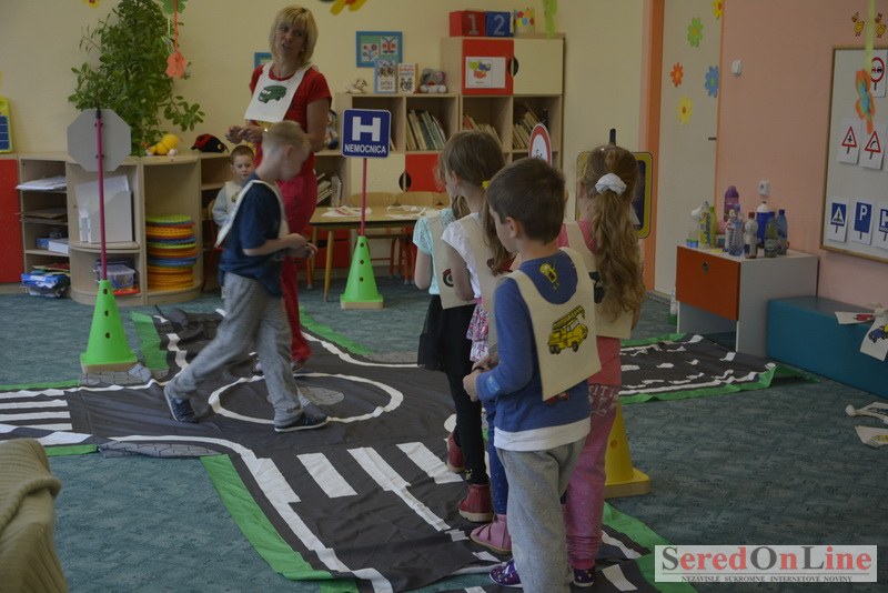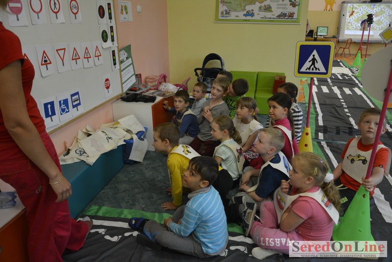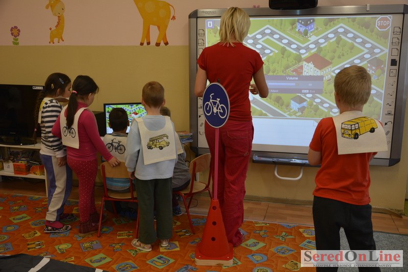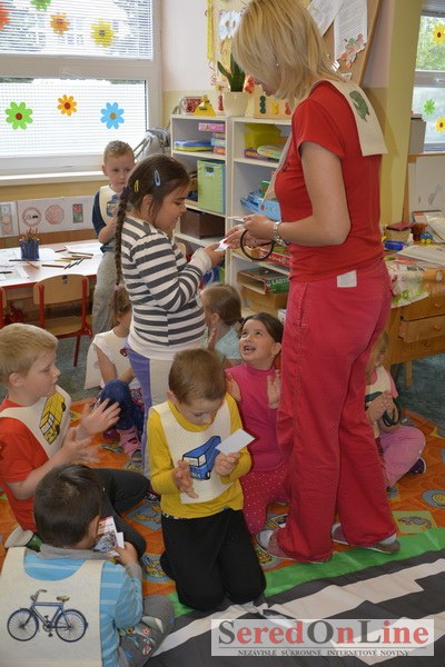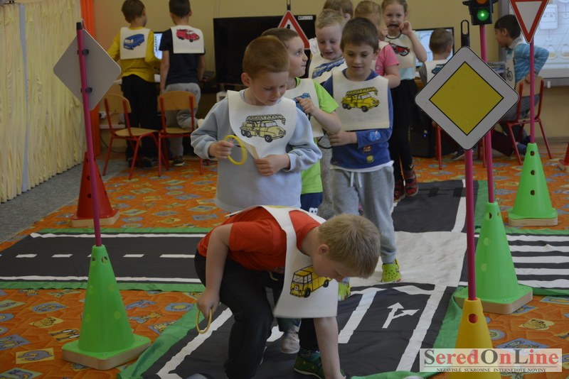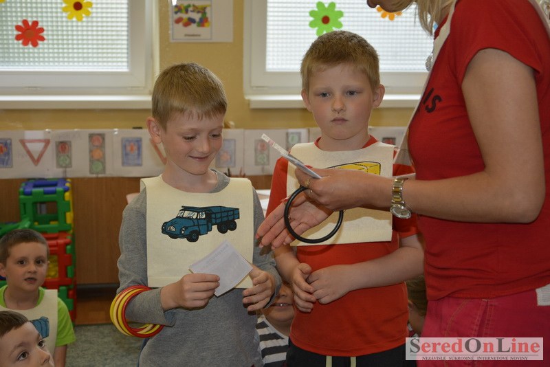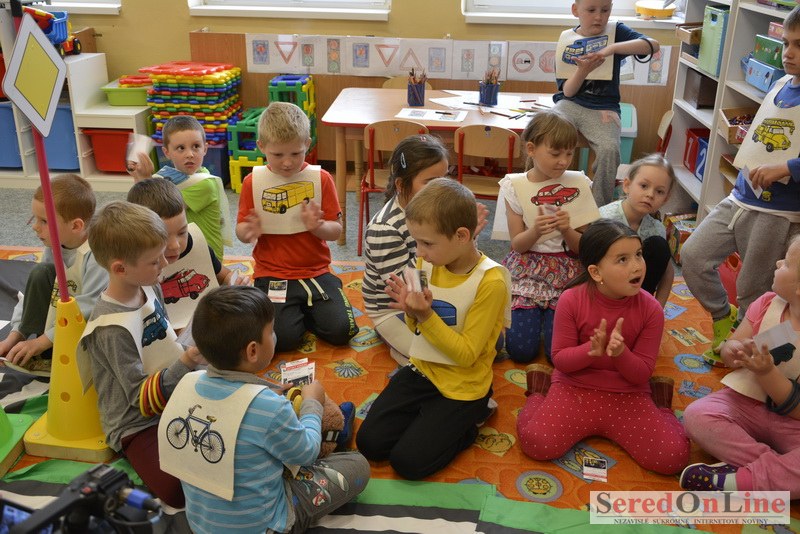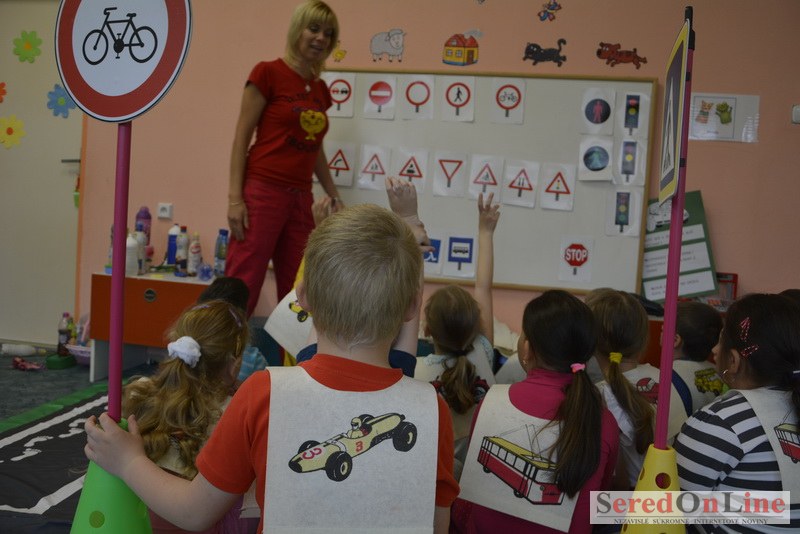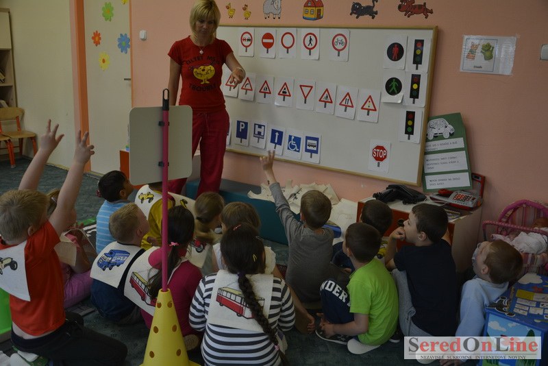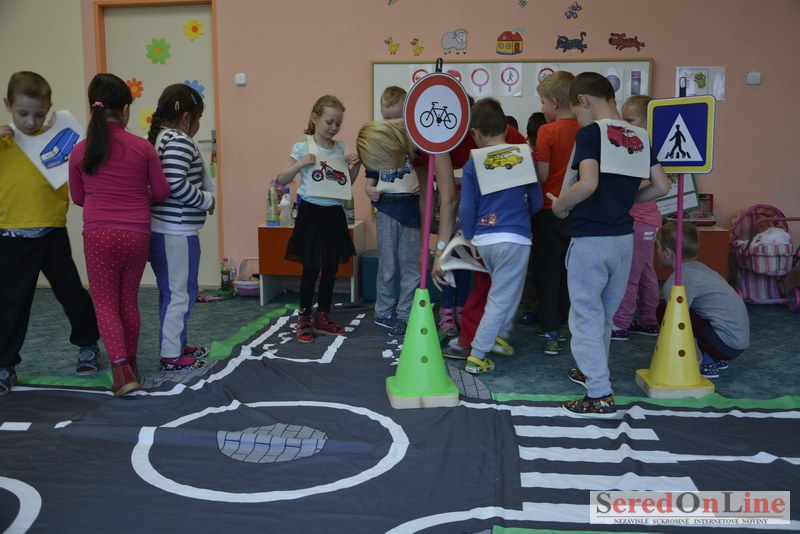 Sereď / V dnešné predpoludnie bolo mobilné dopravné ihrisko projektu Bezpečné mesto skutočne naplno využité. Dopravnú výchovu mali možnosť na ňom absolvovať aj preškoláci materskej školy Komenského v budove "B". O tom, že dopravné značky nie sú im cudzie nás presvedčili hneď v úvode. Za pomoci pani učiteľky si znalosti o bezpečnom správaní na cestách zopakovali v teoretickej časti. Správne odpovede na otázky pani učiteľky len tak "sypali ako z rukáva". Potom mohla nasledovať aj jazda v plnej premávke po cestičkách mobilného dopravného ihriska. Tu si precvičili dopravné predpisy, ktoré musia dodržiavať ako chodci tak i dopravné prostriedky. Samozrejme ako správni vodiči nesmú jazdiť bez vodičáka, preto aj oni dostali "detské vodičáky" so svojim menom od projektu Bezpečné mesto.