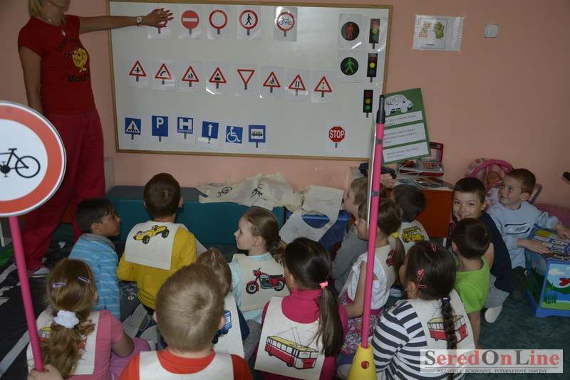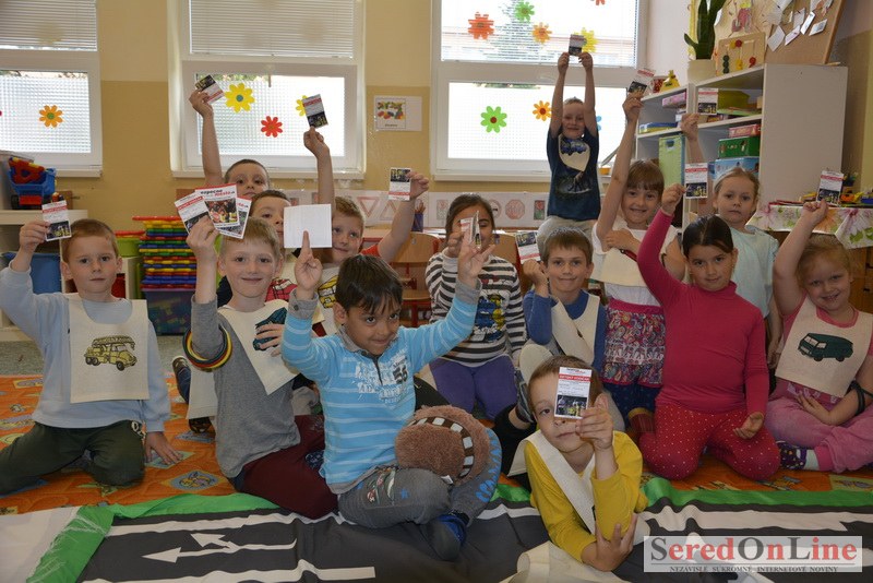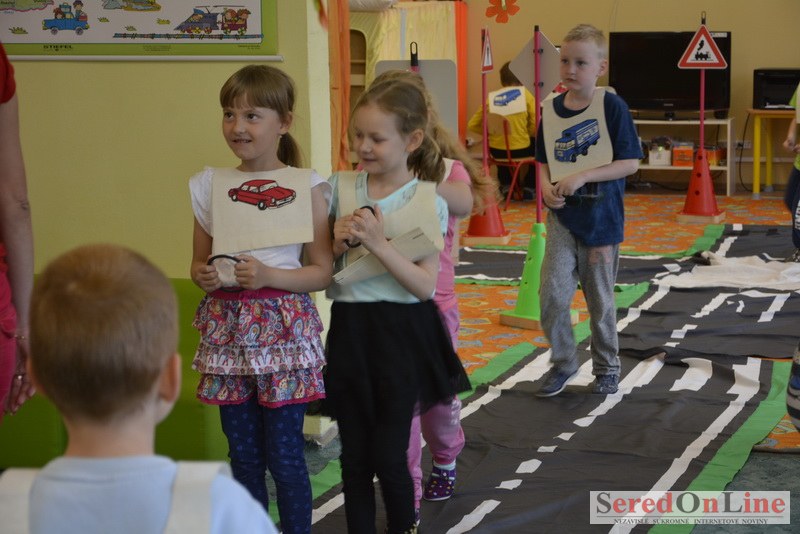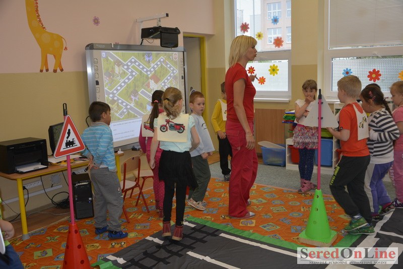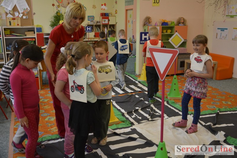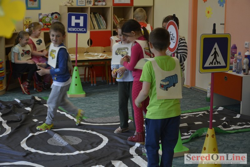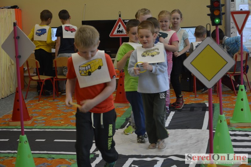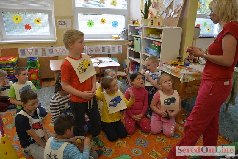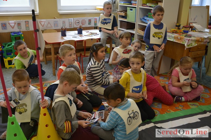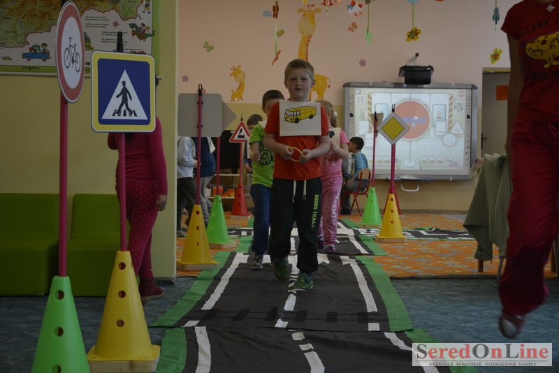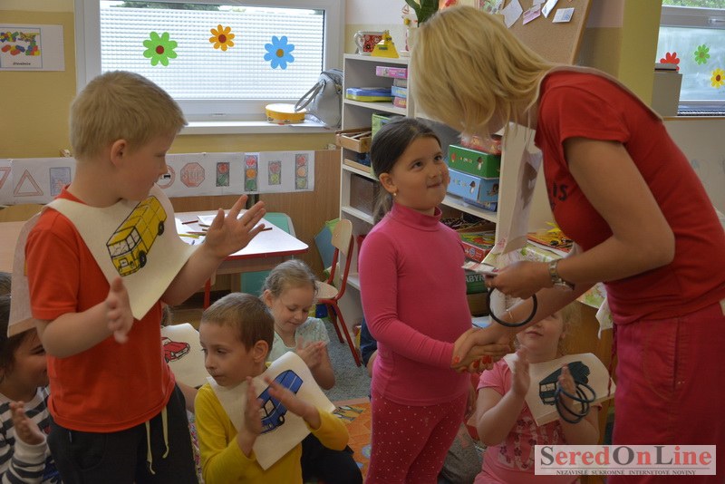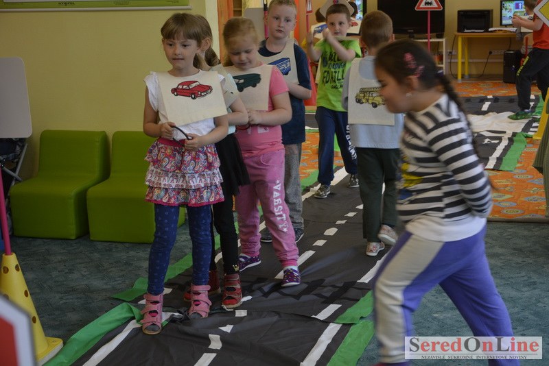 Sereď / V dnešné predpoludnie bolo mobilné dopravné ihrisko projektu Bezpečné mesto skutočne naplno využité. Dopravnú výchovu mali možnosť na ňom absolvovať aj preškoláci materskej školy Komenského v budove "B". O tom, že dopravné značky nie sú im cudzie nás presvedčili hneď v úvode. Za pomoci pani učiteľky si znalosti o bezpečnom správaní na cestách zopakovali v teoretickej časti. Správne odpovede na otázky pani učiteľky len tak "sypali ako z rukáva". Potom mohla nasledovať aj jazda v plnej premávke po cestičkách mobilného dopravného ihriska. Tu si precvičili dopravné predpisy, ktoré musia dodržiavať ako chodci tak i dopravné prostriedky. Samozrejme ako správni vodiči nesmú jazdiť bez vodičáka, preto aj oni dostali "detské vodičáky" so svojim menom od projektu Bezpečné mesto.