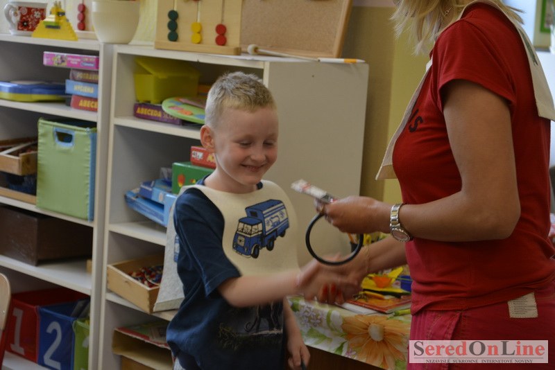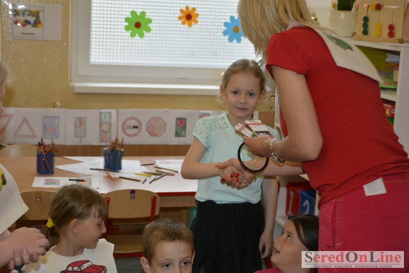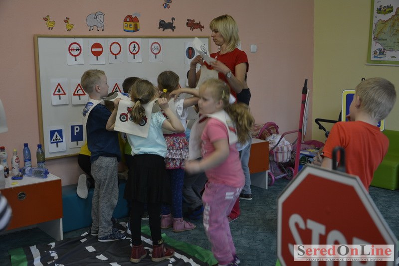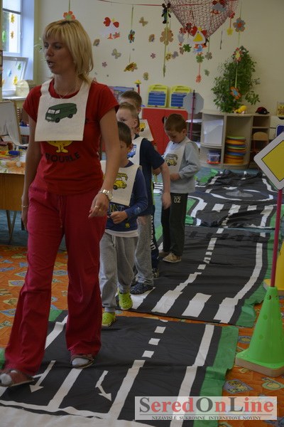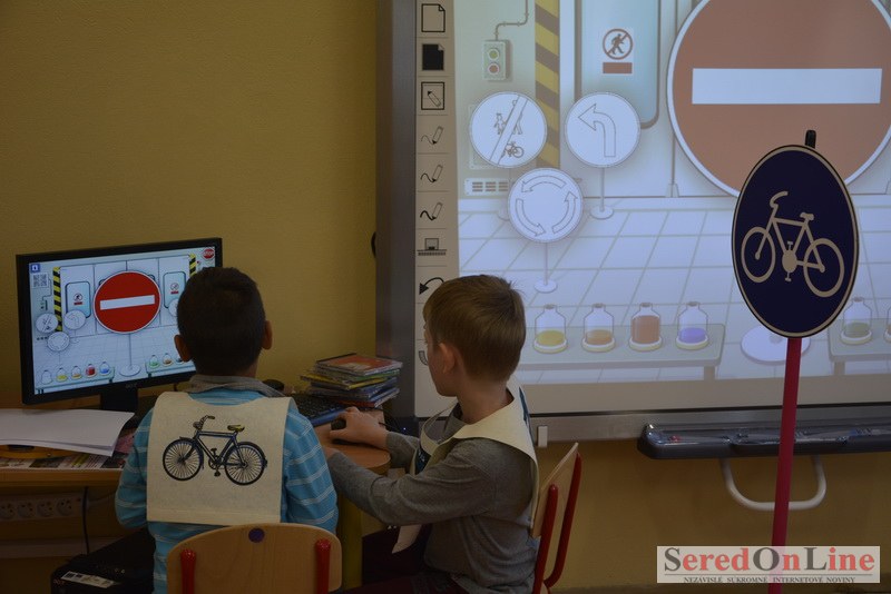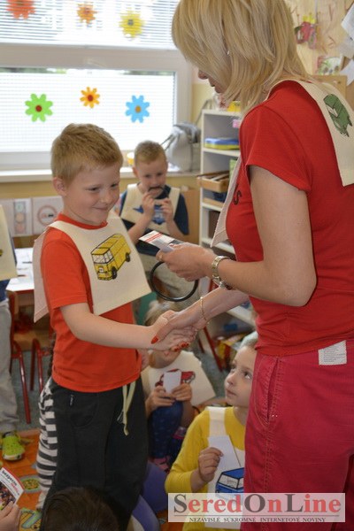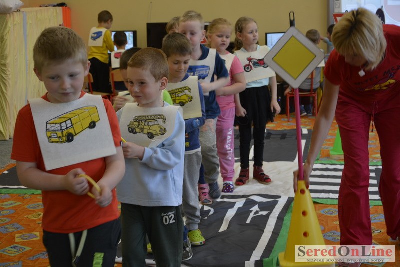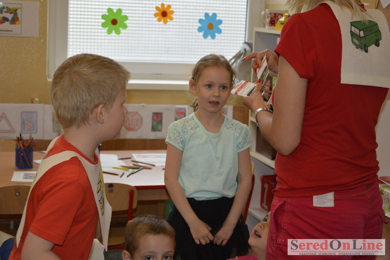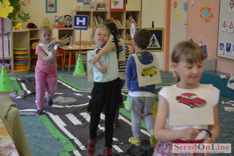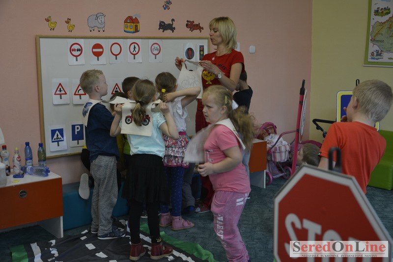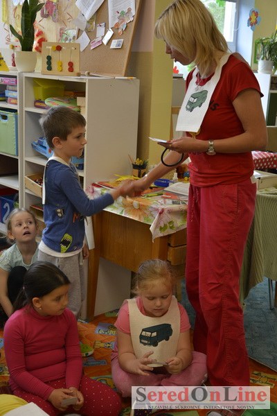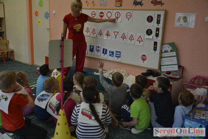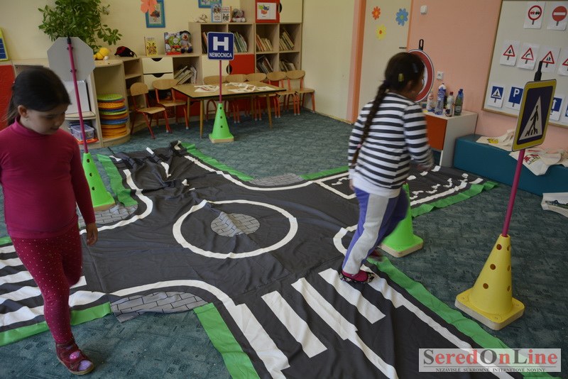 Sereď / V dnešné predpoludnie bolo mobilné dopravné ihrisko projektu Bezpečné mesto skutočne naplno využité. Dopravnú výchovu mali možnosť na ňom absolvovať aj preškoláci materskej školy Komenského v budove "B". O tom, že dopravné značky nie sú im cudzie nás presvedčili hneď v úvode. Za pomoci pani učiteľky si znalosti o bezpečnom správaní na cestách zopakovali v teoretickej časti. Správne odpovede na otázky pani učiteľky len tak "sypali ako z rukáva". Potom mohla nasledovať aj jazda v plnej premávke po cestičkách mobilného dopravného ihriska. Tu si precvičili dopravné predpisy, ktoré musia dodržiavať ako chodci tak i dopravné prostriedky. Samozrejme ako správni vodiči nesmú jazdiť bez vodičáka, preto aj oni dostali "detské vodičáky" so svojim menom od projektu Bezpečné mesto.