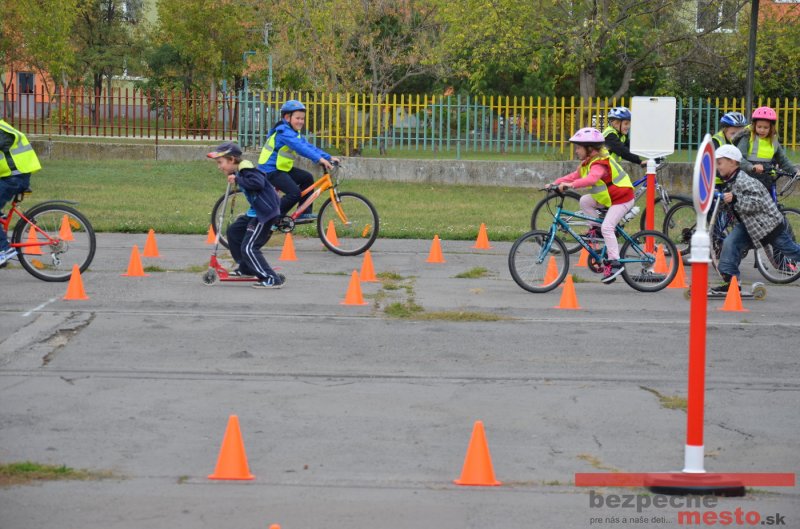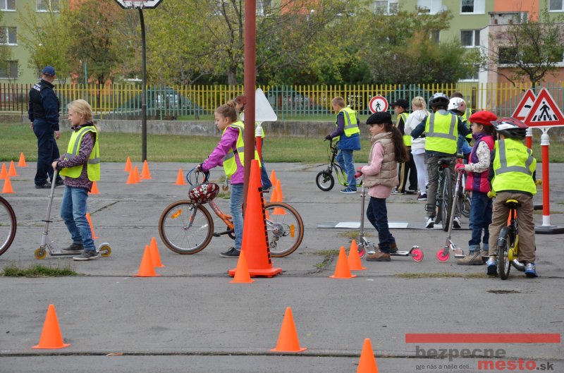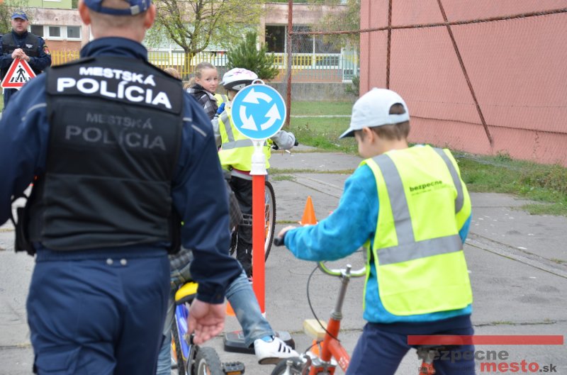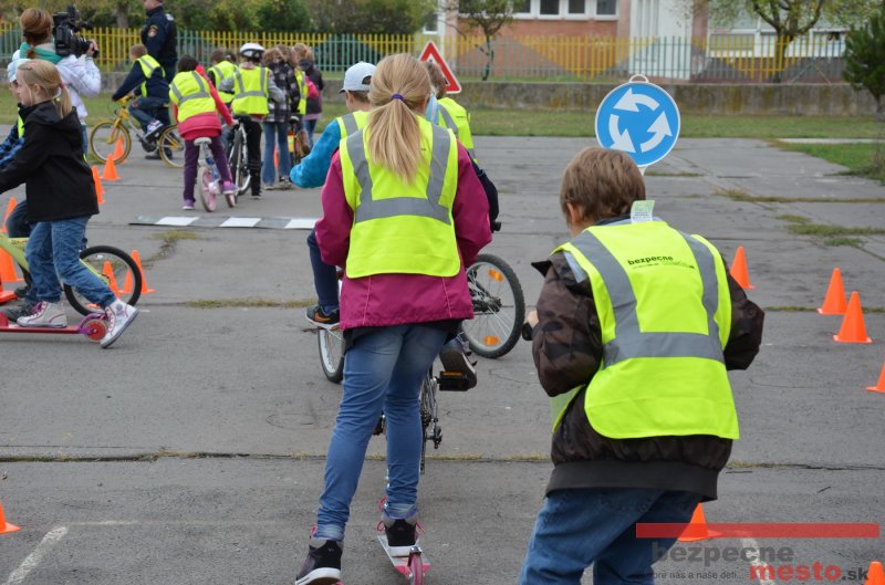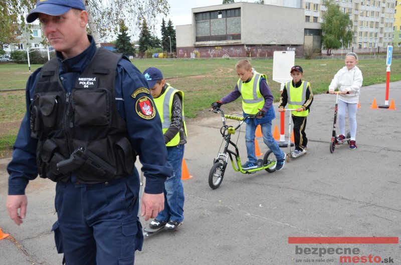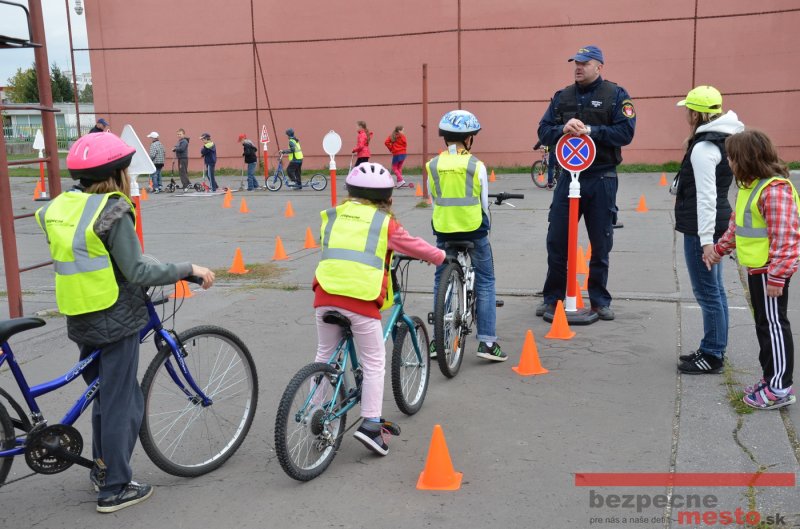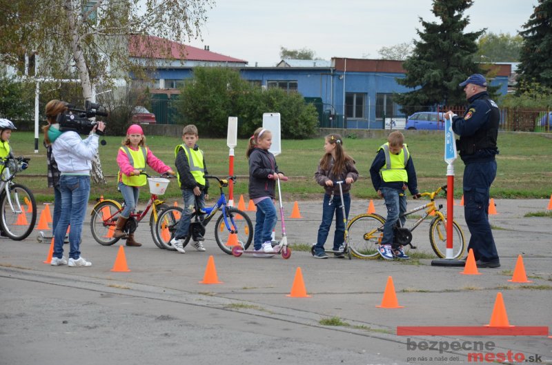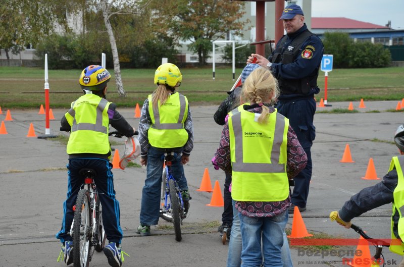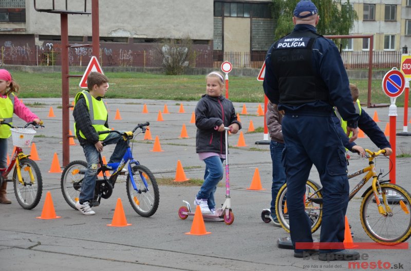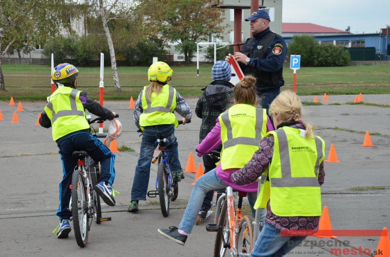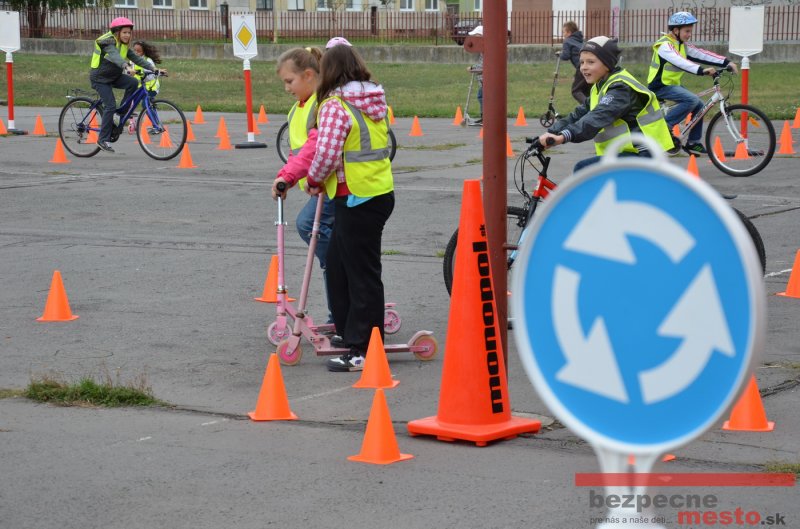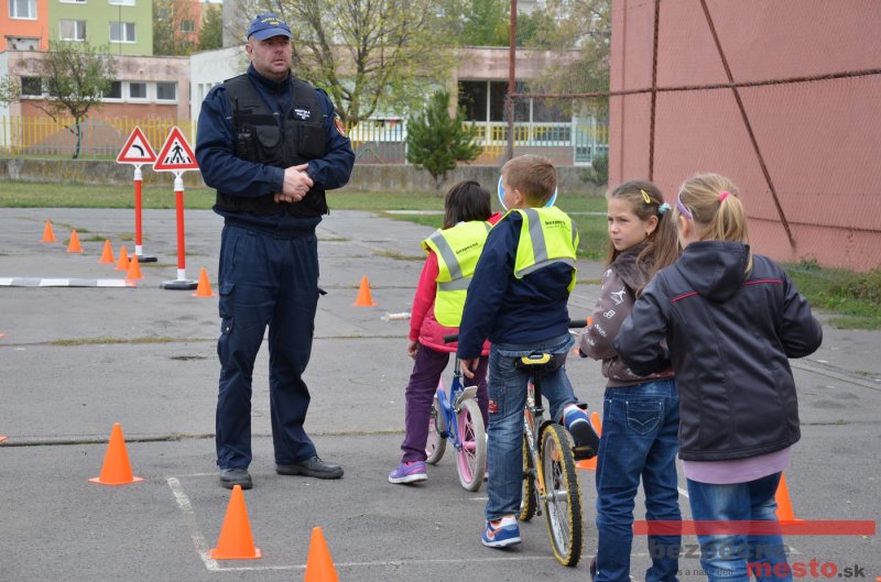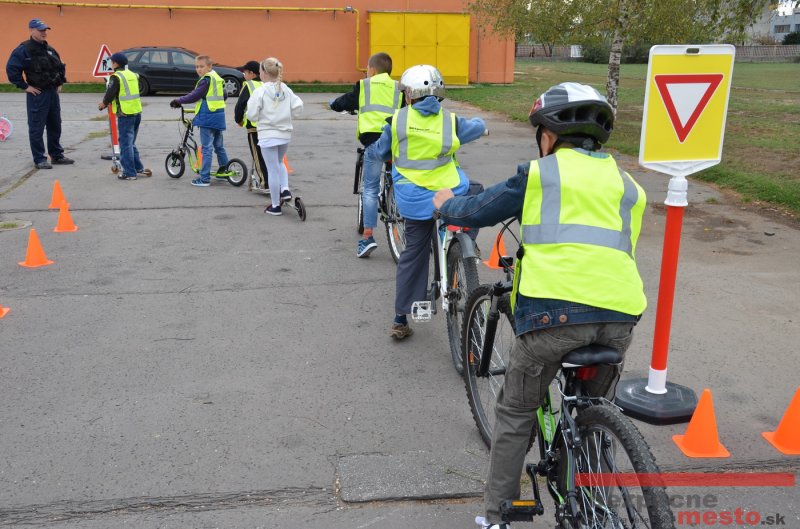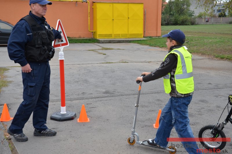 Sereď | Jeden z posledných príjemne teplých dní tohto roka využili aj žiaci základnej školy J. Fándlyho na to, aby si zopakovali pravidlá cestnej premávky. Do školy si priniesli bicykle a kolobežky, s ktorými asi v pol hodinových intervaloch postupne vyšli na ihrisko, kde ich čakali dopravné značky prenosného dopravného ihriska projektu Bezpečné mesto. Odborne sa deťom venovali dvaja policajti Mestskej polície Miloš Marcinkech a Radovan Horváth, ktorí deťom podrobne vysvetlili ako sa majú správať na ceste, funkciu každej dopravnej značky a nasimulovaných dopravných situácií.