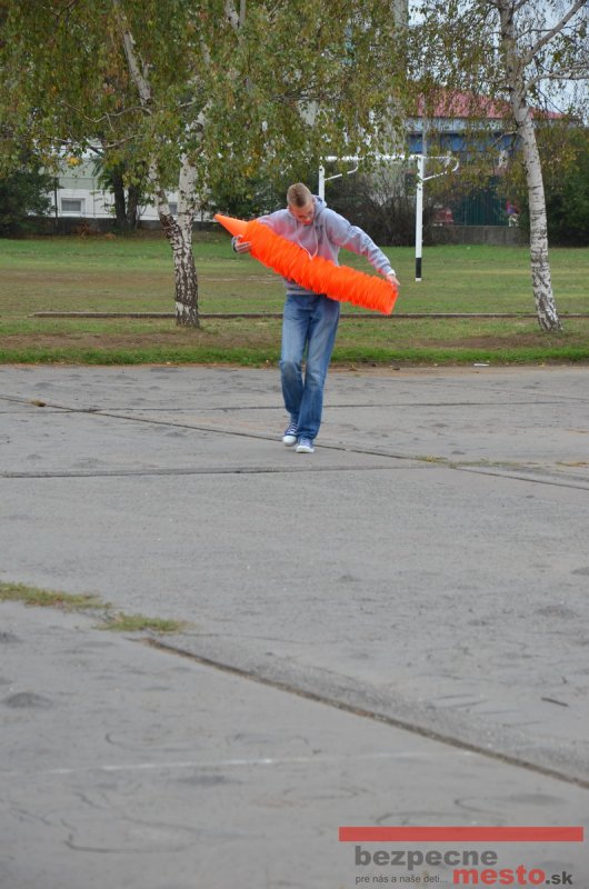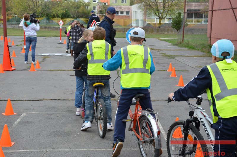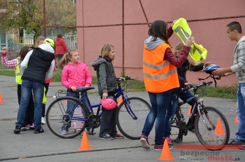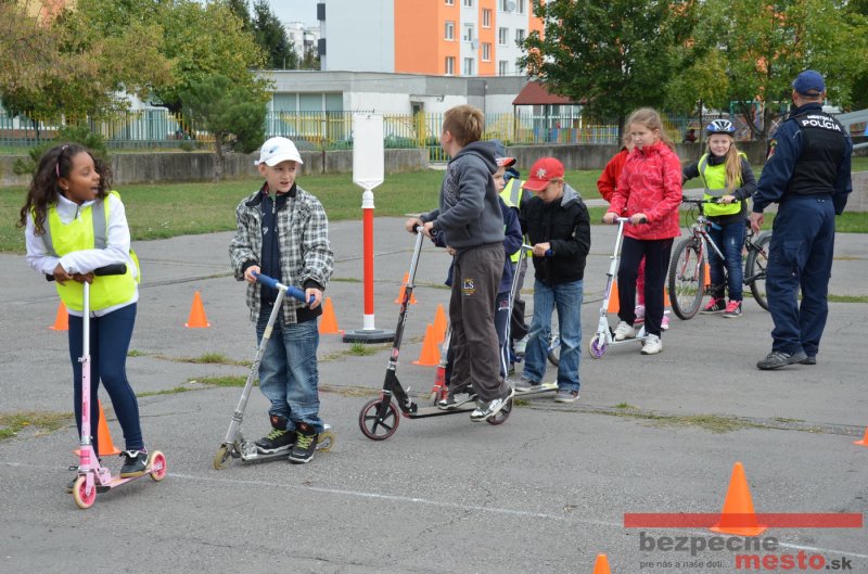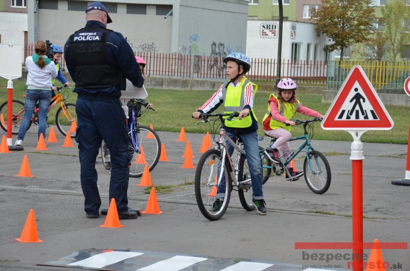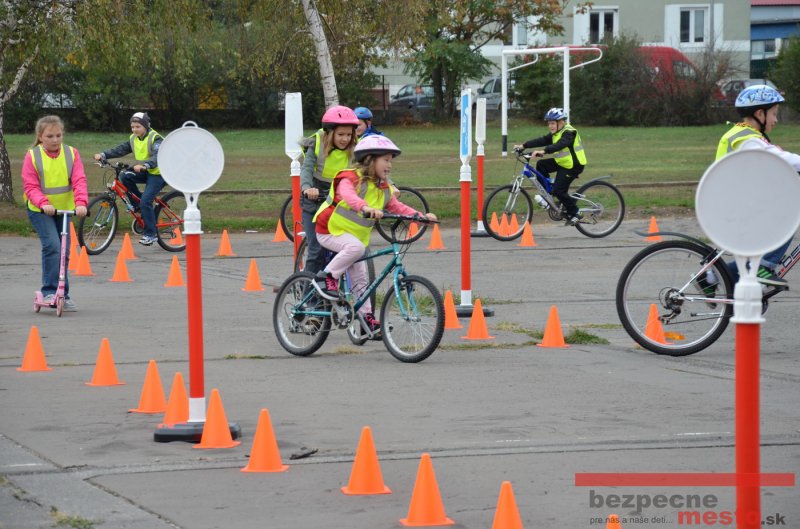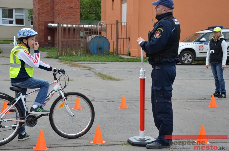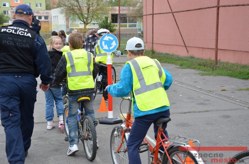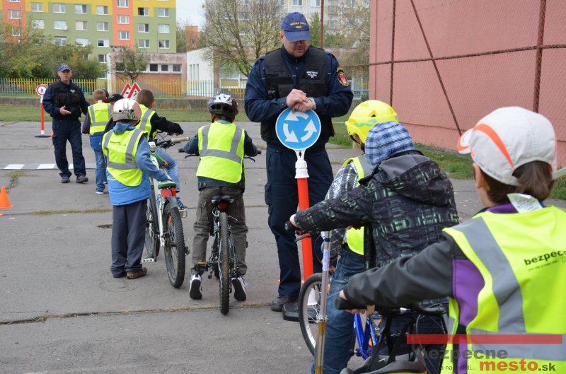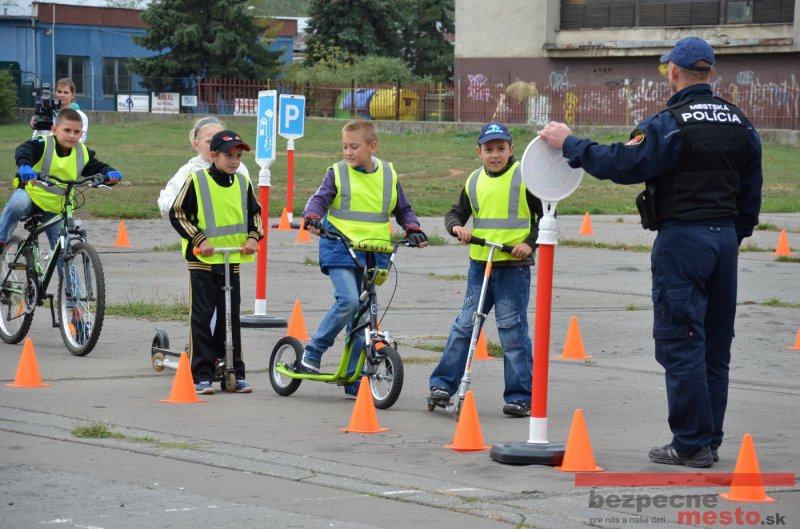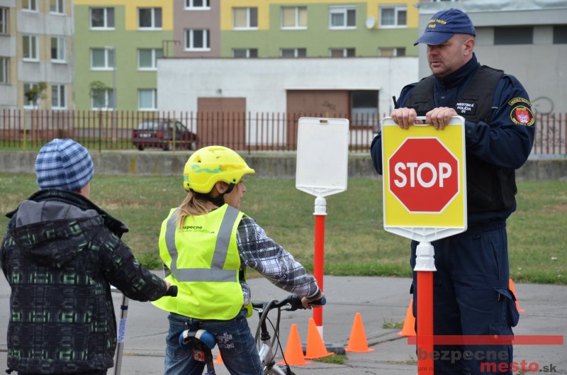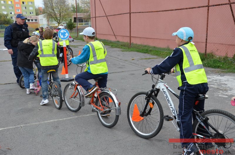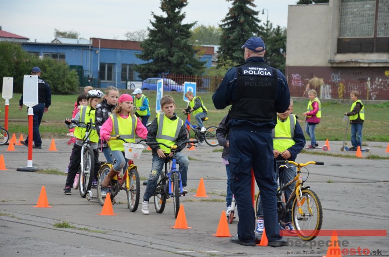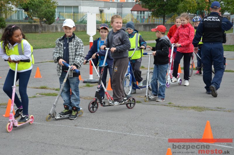 Sereď | Jeden z posledných príjemne teplých dní tohto roka využili aj žiaci základnej školy J. Fándlyho na to, aby si zopakovali pravidlá cestnej premávky. Do školy si priniesli bicykle a kolobežky, s ktorými asi v pol hodinových intervaloch postupne vyšli na ihrisko, kde ich čakali dopravné značky prenosného dopravného ihriska projektu Bezpečné mesto. Odborne sa deťom venovali dvaja policajti Mestskej polície Miloš Marcinkech a Radovan Horváth, ktorí deťom podrobne vysvetlili ako sa majú správať na ceste, funkciu každej dopravnej značky a nasimulovaných dopravných situácií.