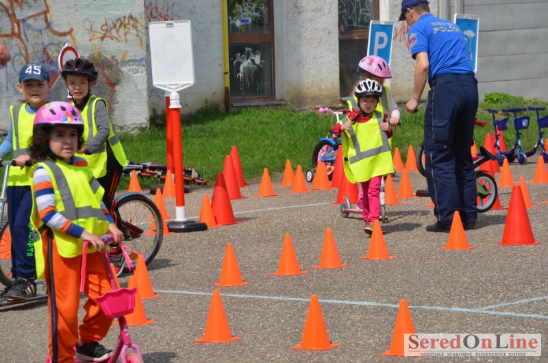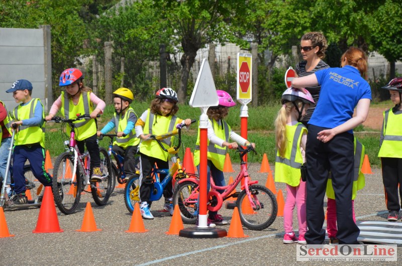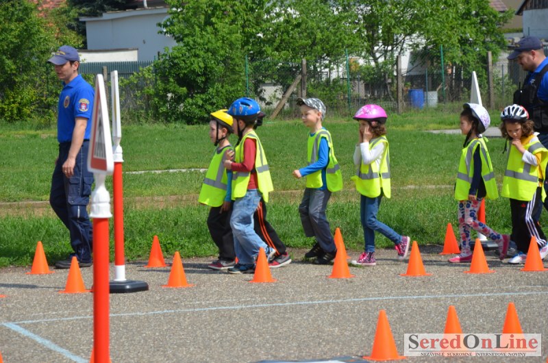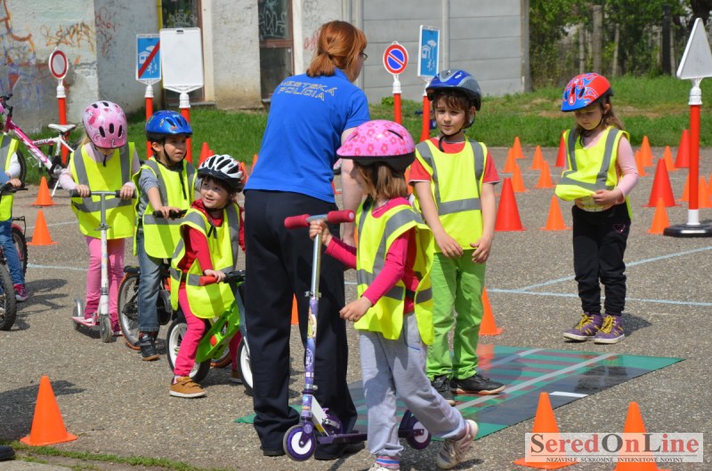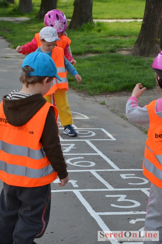 Sereď | Inak ako dokonalou spoluprácou v oblasti prevencie, nemožno nazvať posledné akcie Mestskej polície v Seredi a projektu BEZPEČNÉ MESTO. Hneď v prvých teplejších dňoch mestskí policajti za úzkej spolupráce aktivistov projektu BEZPEČNÉ MESTO urobili sériu akcií pre materské školy v meste. Mobilné dopravné ihrisko ktoré je vo vlastníctve združenia, bolo k akciám zameraným na prevenciu zapožičané bezplatne. Mestskí policajti spolu s preventistkou Karin sa detičkám venovali tak intenzívne, že sa im z ihriska nechcelo odísť ani v čase, kedy už boli viditeľne unavené.