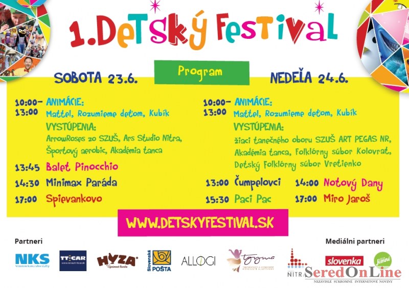 Tento rok sme na každý deň zavolali tých najobľúbenejších. V sobotu zaspieva Spievanka a Zahrajko zo Spievankova a v nedeľu Miro Jaroš, na ktorého sa už teší veľa detí. Okrem toho prídu aj PACI PAC, Notový Dany, Čumpelovci, kamaráti z MINIMAXU, Akadémia tanca, detský balet Pinocchio, folklorny subor Kolovrat, Detský folklórny súbor Vretienko, SZUŠ ART PEGAS, ArrowRoses zo SZUŠ a Ars Studio Nitra.