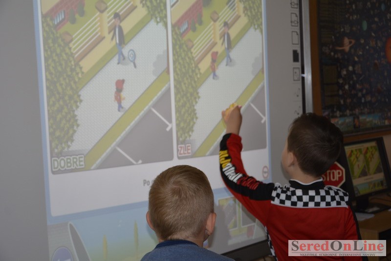 Výučbu dopravnej výchovy pani učiteľky deťom doplnili praktickou časťou za využitia mobilného interiérového dopravného ihriska projektu Bezpečné mesto. Poučení, ako sa bezpečne správať v cestnej premávke, znalí dopravných značiek či bezpečnostných reflexných prvkov s „detským vodičákom“ vo vrecku sa pustili na jazdu po dopravnom ihrisku pripravenom v triede. Priamo na mieste sme sa presvedčili o tom, že detičky sú dostatočne poučené a pripravené, nakoľko ku žiadnej "kolízii" v premávke nedošlo :-)