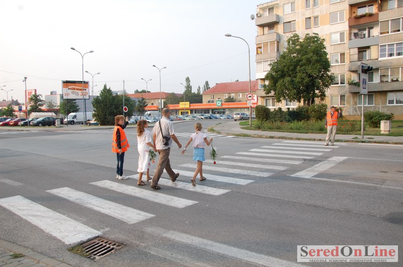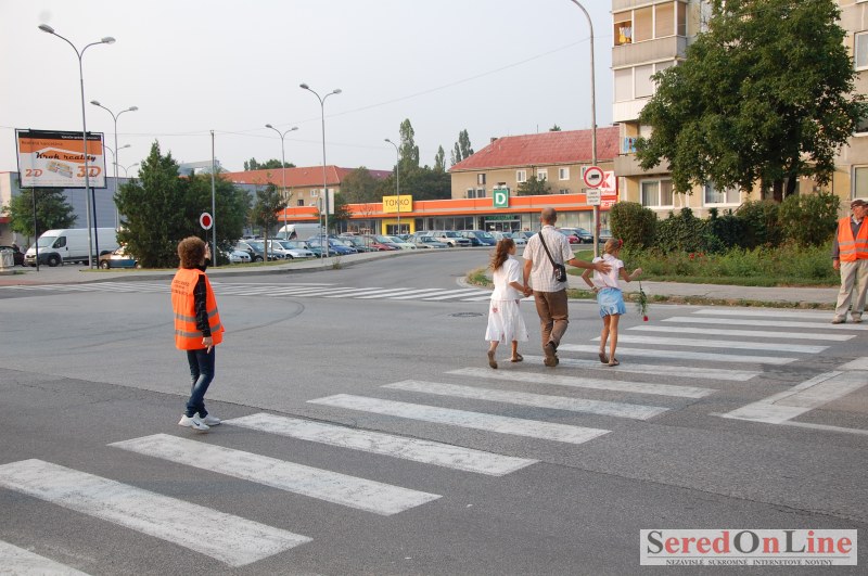 20.1.2012 začali seniori nášho mesta aktívne pomáhať bezpečne prechádzať deťom cez priechody pre chodcov. V tom čase to bolo na ulici Čepenská. Neskôr a to 8.3.2012 pribudla aj ulica Cukrovarská. Jedná sa o projekt Mestskej polície Sereď tzv. grantový program nadácie Orange: „Zelená pre seniorov“ pod názvom „Pre aktívne starnutie seniorov mesta Sereď“ (ďalej len „projekt“). Tento projekt využíva angažovanosť aktívnych seniorov pri dohľade nad bezpečným prechodom detí cez priechody pre chodcov v blízkosti škôl a školských zariadení, v ranných hodinách počas dní školského vyučovania. Seniorom bolo vydané poverenie Okresným dopravným išpektorátom v Galante. Dohľad sa uskutočňuje v raňajších hodinách od 7.00 do 8.00 hodiny. Dôchodcovia aj tento školský rok budú dohliadať nad bezpečným priechodom detí cez cestu. Nebolo tomu inak ani dnes, kedy sme ich zastihli pri výkone tejto činnosti s kamerou.
