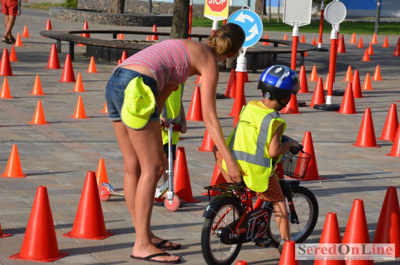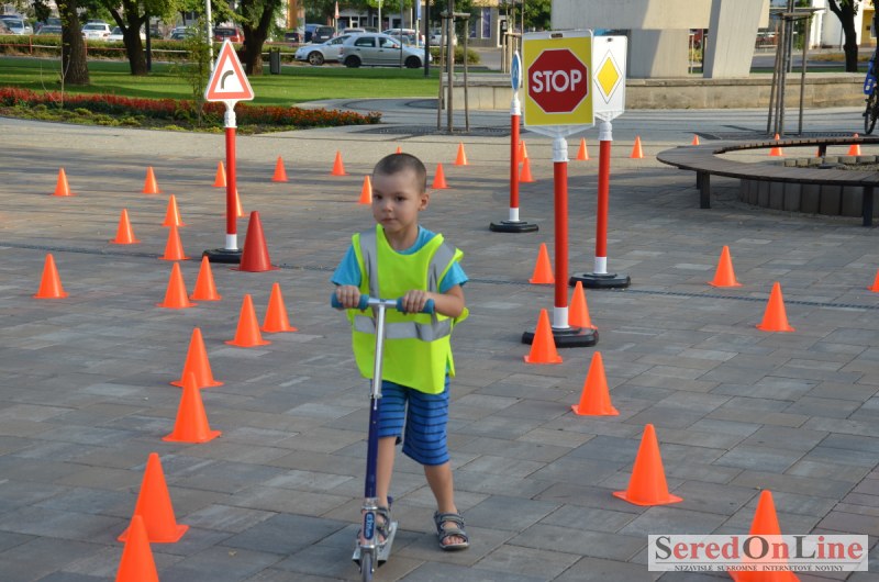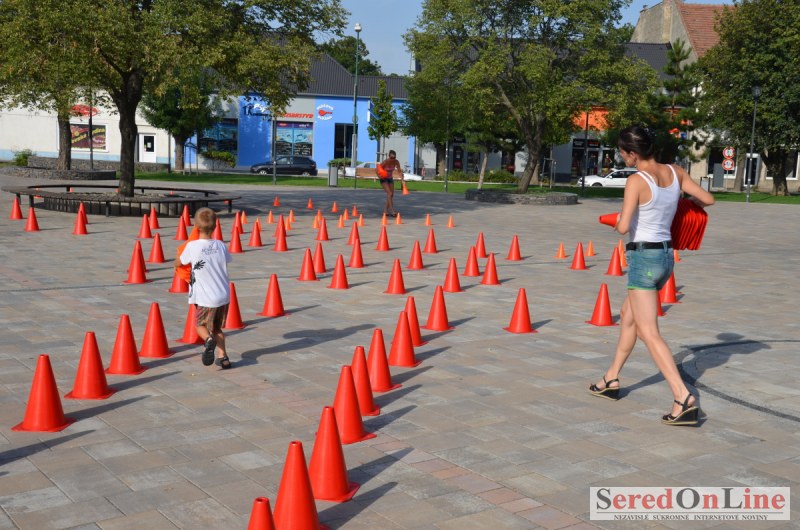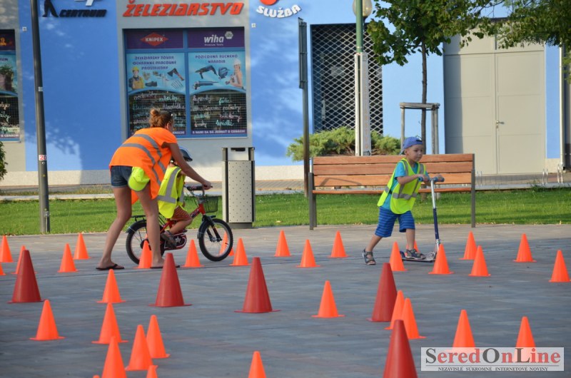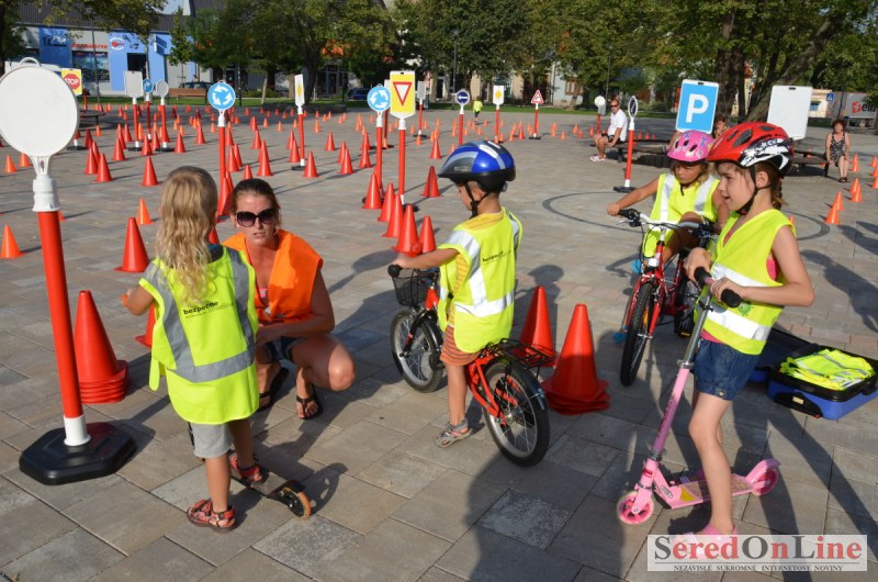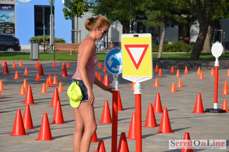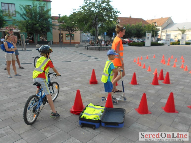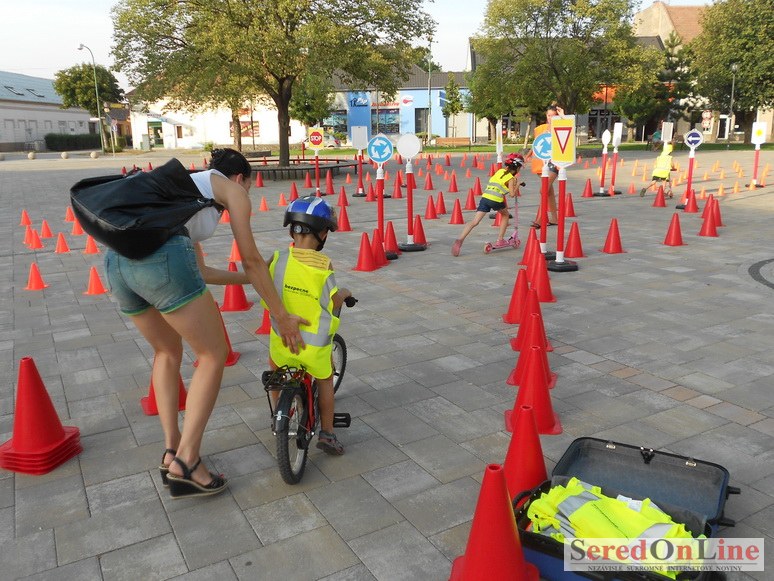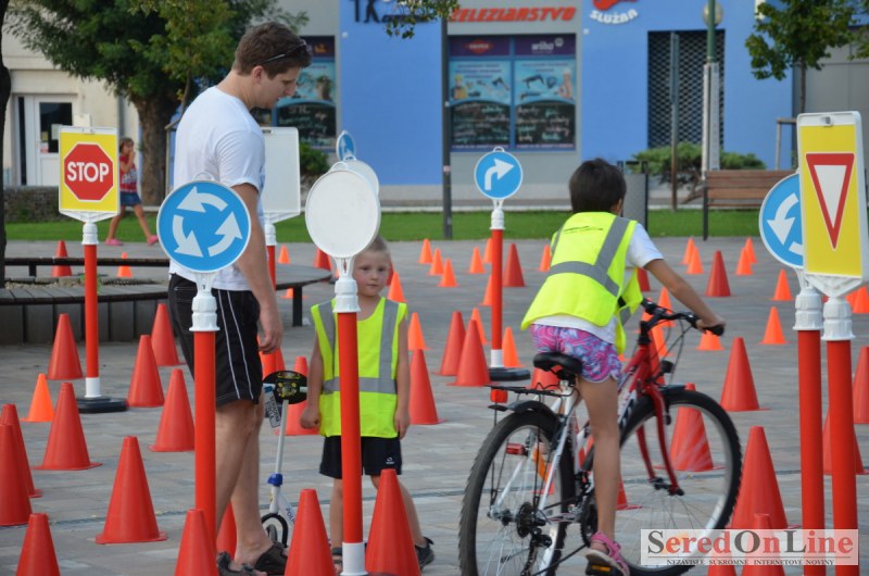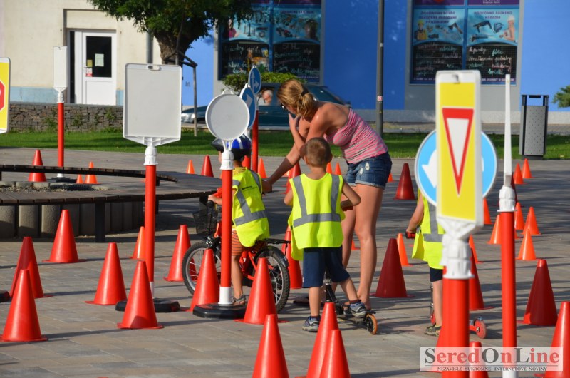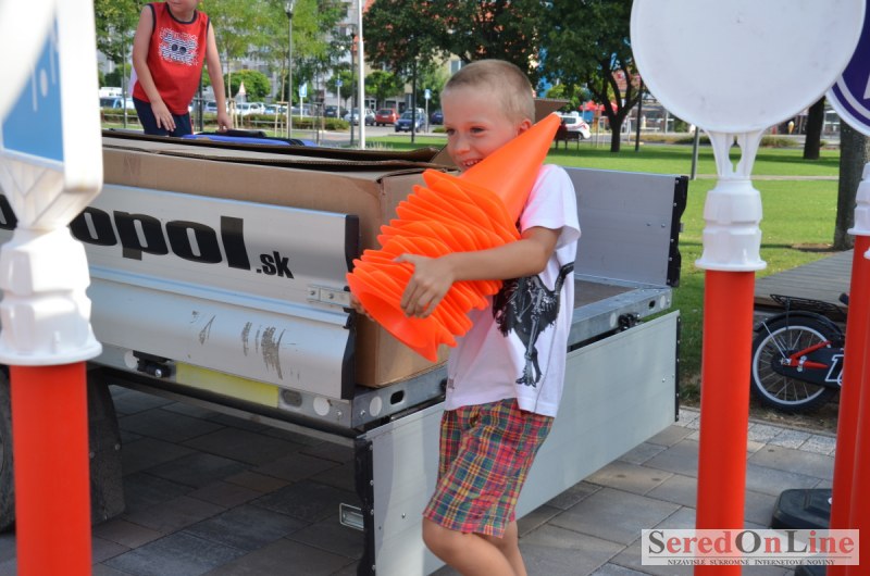 Sereď | Ani 40 stupňové dnešné teploty neodradili niekoľko rodičov s malými deťmi od návštevy mobilného dopravného ihriska, ktoré dnes pred 18.00 hod. bolo k dispozícii na Námestí Slobody v Seredi. Zmenšená verzia tohto pre deti mimoriadne atraktívneho nielen zábavného ale aj vzdelávacieho projektu bola použitá z dôvodu nulového záujmu zo strany rodičov pomôcť pri realizácii projektu pre ich vlastné deti. Treba povedať, že ihrisko, ktoré majú k dispozícii deti z nášho mesta je svojim obsahom, modernosťou a funkčnosťou unikátom, ktorý zatiaľ samotní rodičia akosi nevedia alebo nechcú zobrať do úvahy. Naozaj si je potrebné uvedomiť, že pokiaľ sa o vlastné deti v čase voľna nepostaráme my rodičia, postarajú sa o ne iní a dá sa predpokladať, že na stránkach SOL budú aktivity mnohých z nich namiesto v rubrike prevencia, v rubrike krimi správy. Do dnešného rozkladania a skladania bezpečnostných prvkov sa napriek výzve zapojila iba Lucia Porubská s manželom, Erik Štefánek, pani Javorová so synom a Karin Jantošková so synom.
