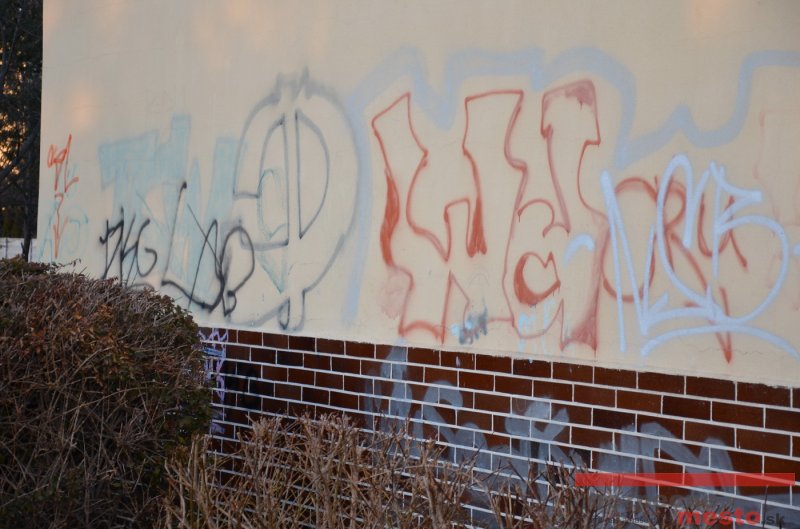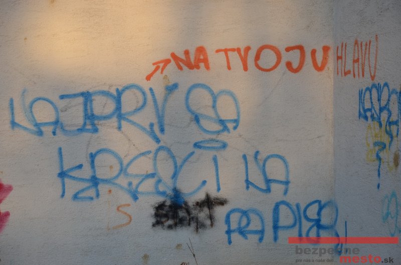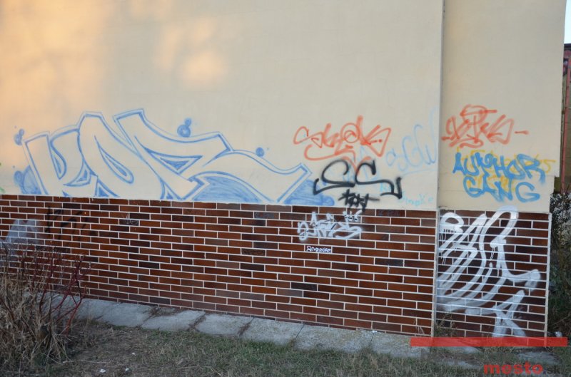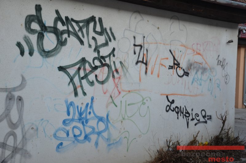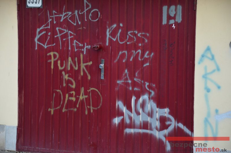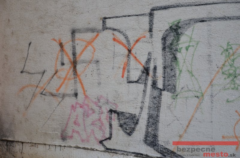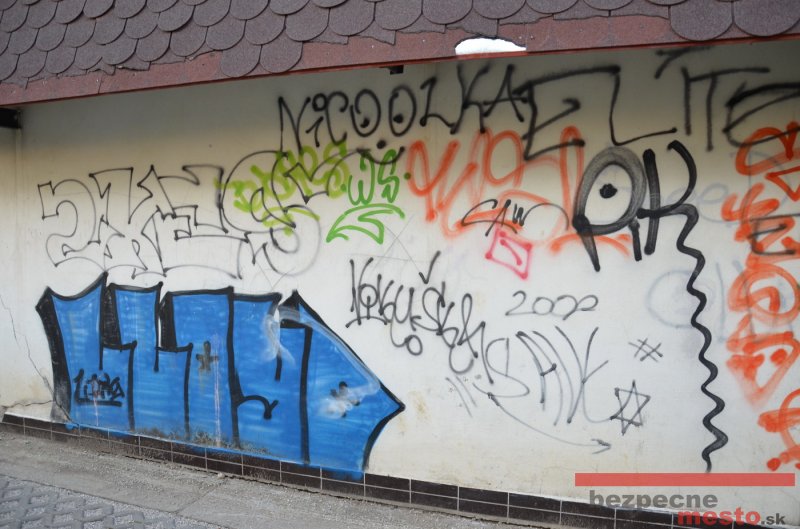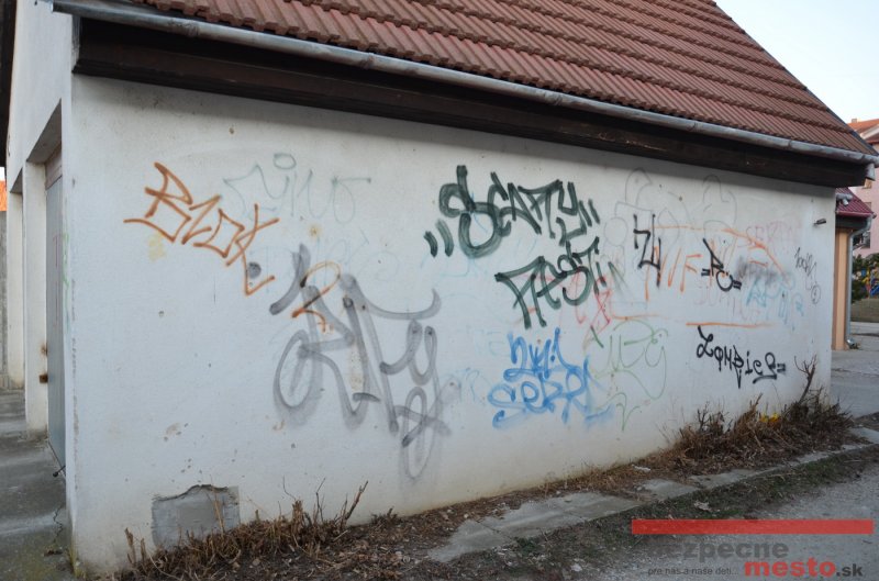 Takýchto záberov vidíme v našom meste skutočne veľké množstvo. Je to ničenie majetku mesta, majetku obyvateľov a celkovo negatívna reklama nášho mesta. Niekto to možno považuje za umenie no ja to skôr prirovnám k určitému pudu. Najviac sa to podobá na vrodený pud psí , ktorí si jeden po druhom preznačkovávajú svoj revír, čo je prirodzené a neškodné. Ale takéto ničenie majetku už hraničí s debilitou. Je to otrasné a už máme počarbané celé mesto.