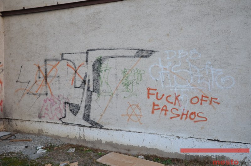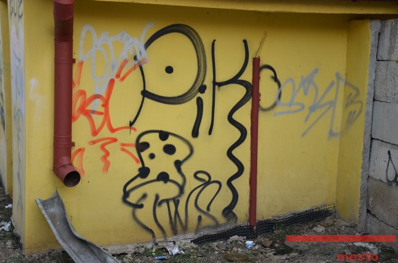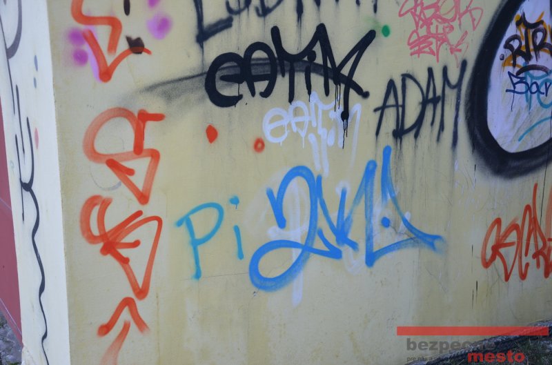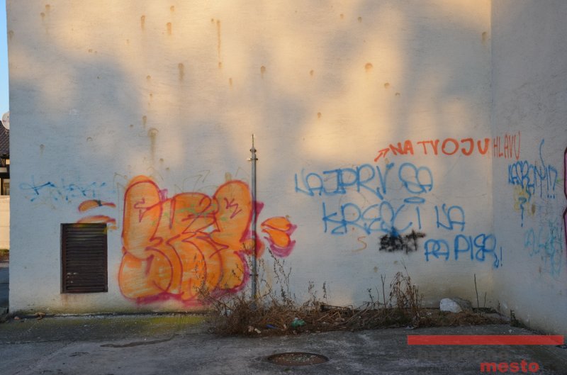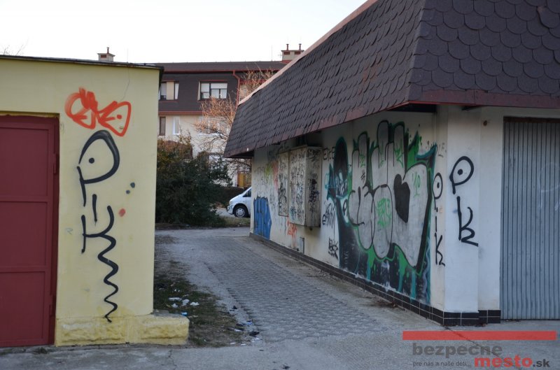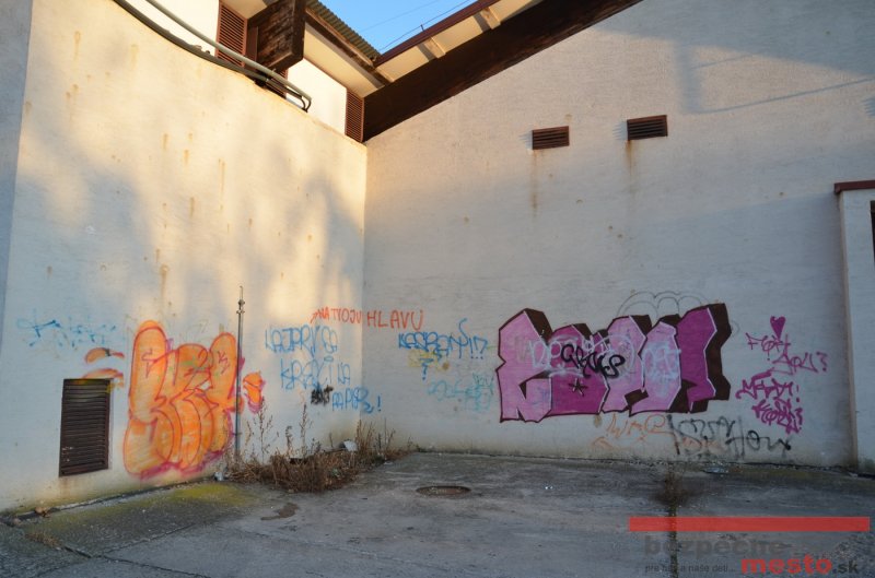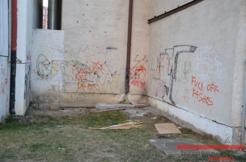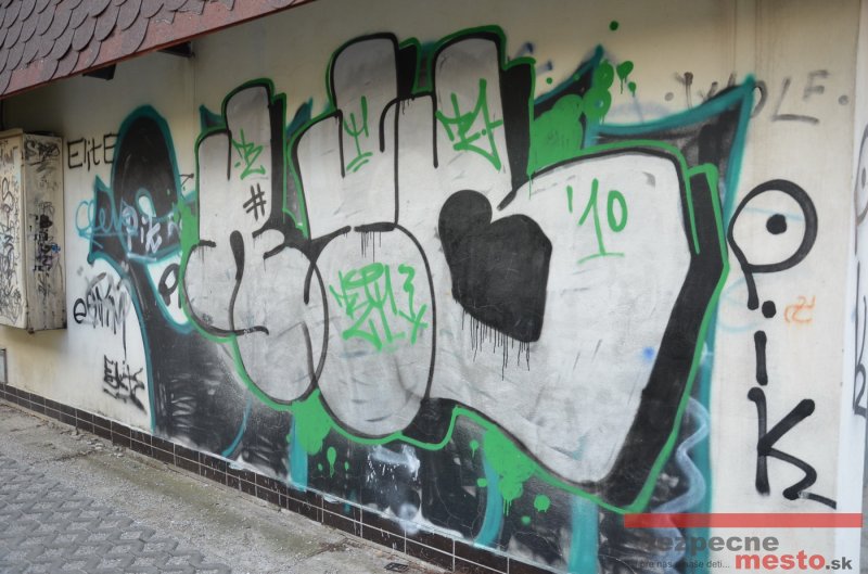 Takýchto záberov vidíme v našom meste skutočne veľké množstvo. Je to ničenie majetku mesta, majetku obyvateľov a celkovo negatívna reklama nášho mesta. Niekto to možno považuje za umenie no ja to skôr prirovnám k určitému pudu. Najviac sa to podobá na vrodený pud psí , ktorí si jeden po druhom preznačkovávajú svoj revír, čo je prirodzené a neškodné. Ale takéto ničenie majetku už hraničí s debilitou. Je to otrasné a už máme počarbané celé mesto.