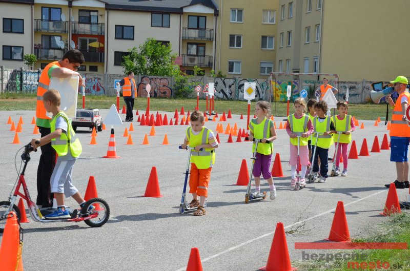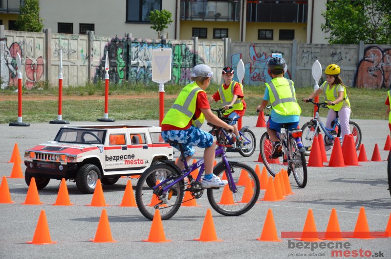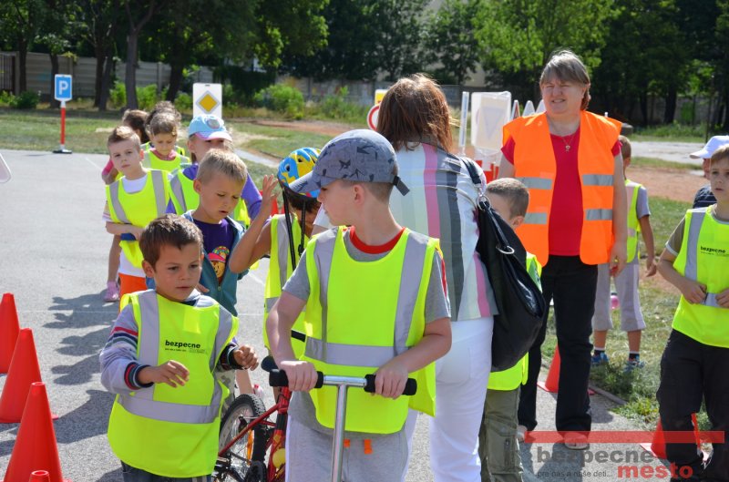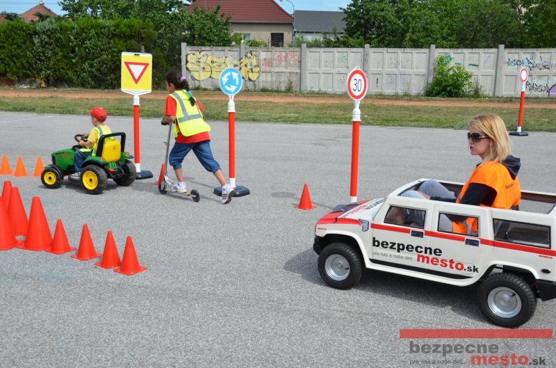 Program bol pre deti pripravený v spolupráci s autoškolou HÍLEK a projektom "Bezpečné mesto" (MajkoDesignStudio). Ďakujeme za pomoc štyrom šikovným deviatakom, bez ktorých by rozloženie a zbalenie prenosného dopravného ihriska trvalo podstatne dlhšie.