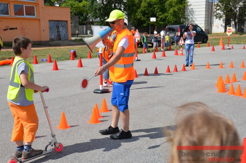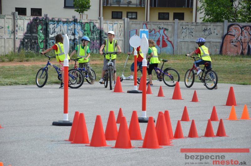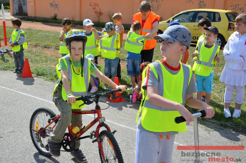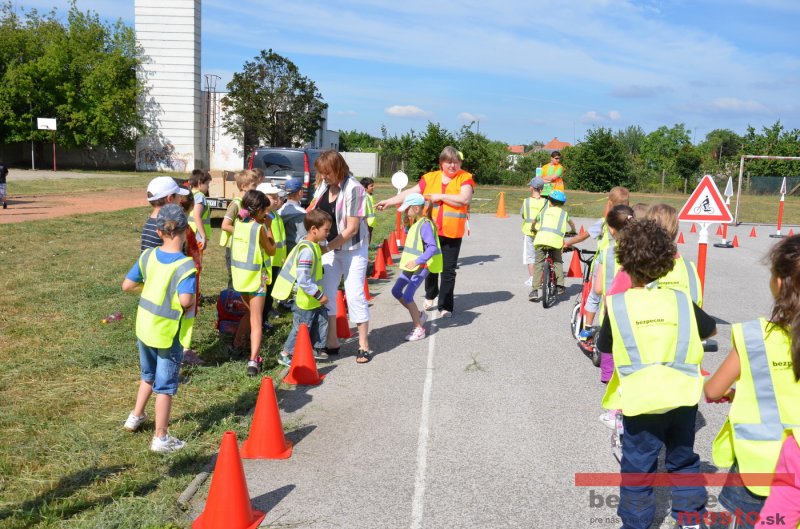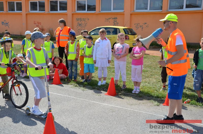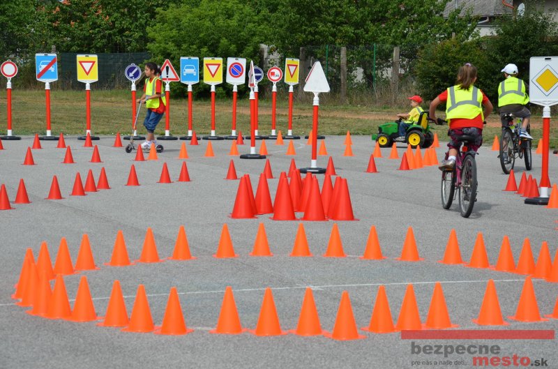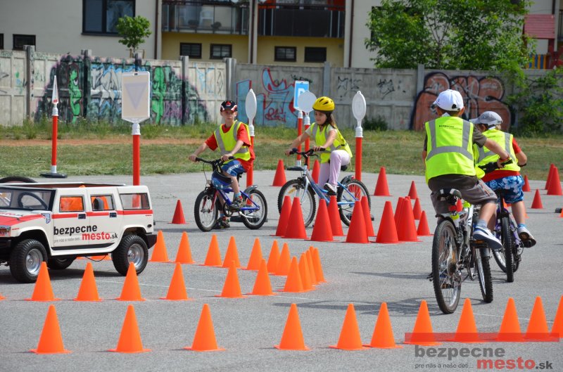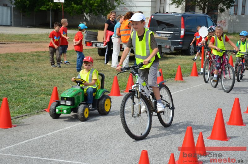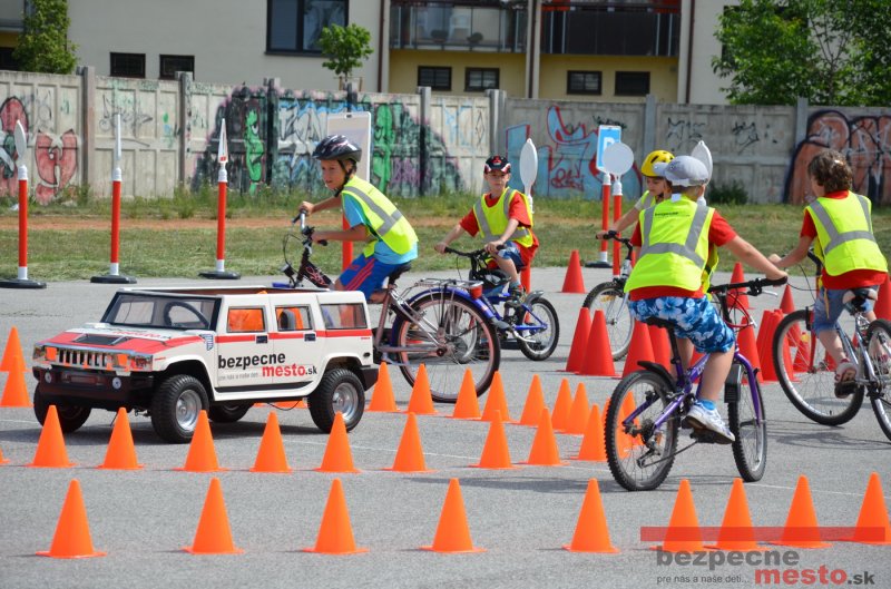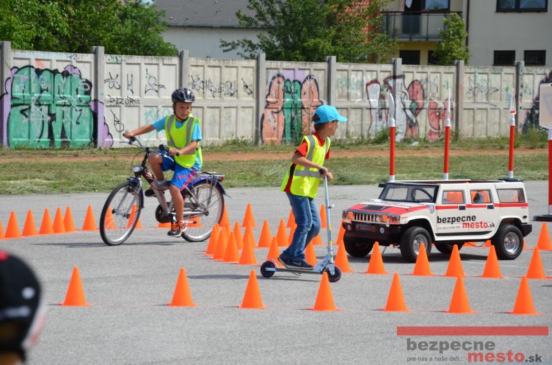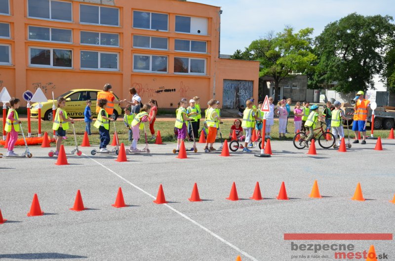 Na školskom ihrisku hneď od ranných hodín bolo rozložené prenosné dopravné ihrisko z projektu "Bezpečné mesto" , na ktorom deti na prinesených bicyklíkoch a kolobežkách pod odborným dohľadom inštruktora autoškoly HÍLEK odborne deti učil, ako sa majú bezpečne pohybovať po cestných komunikáciách.