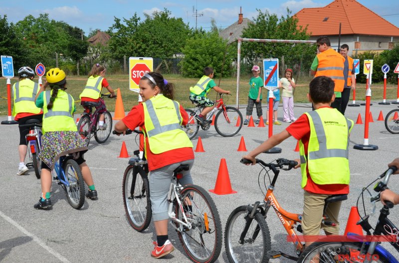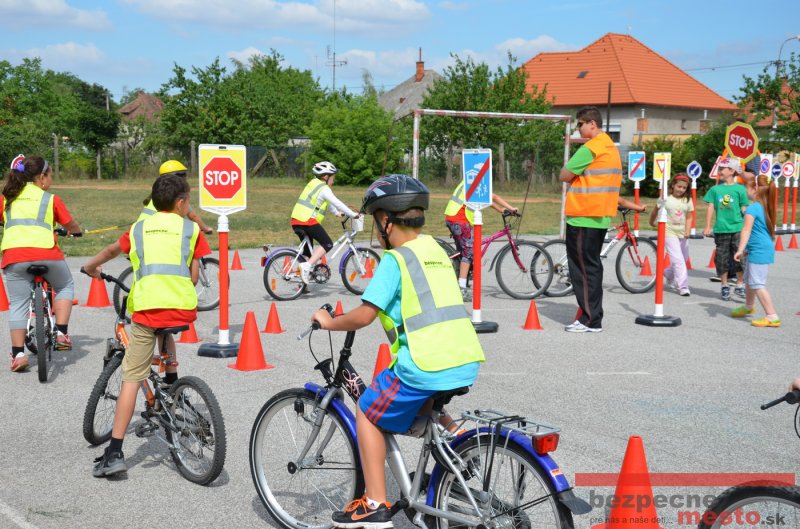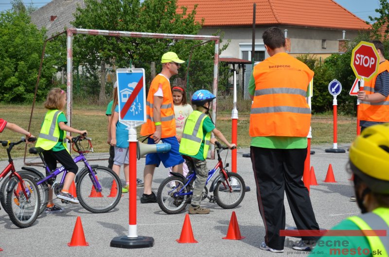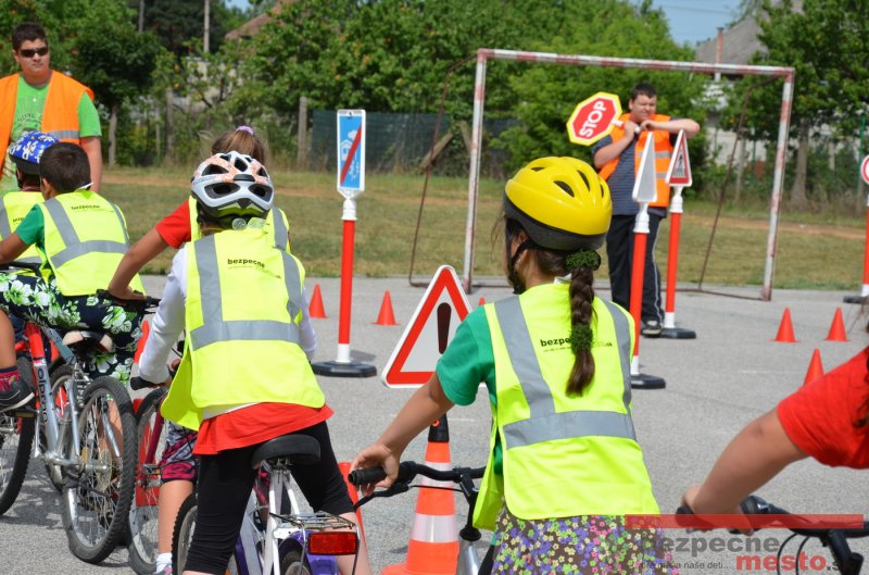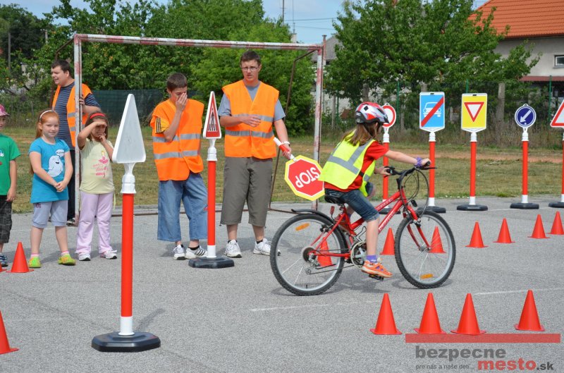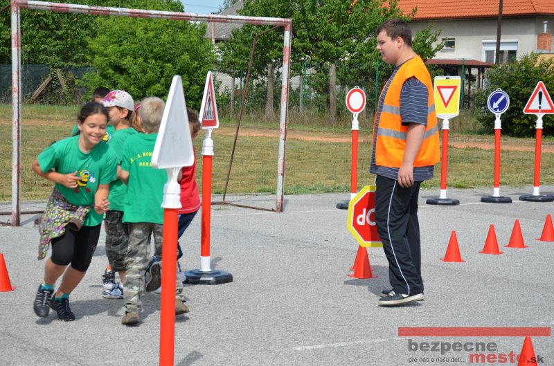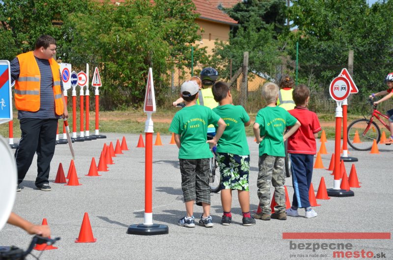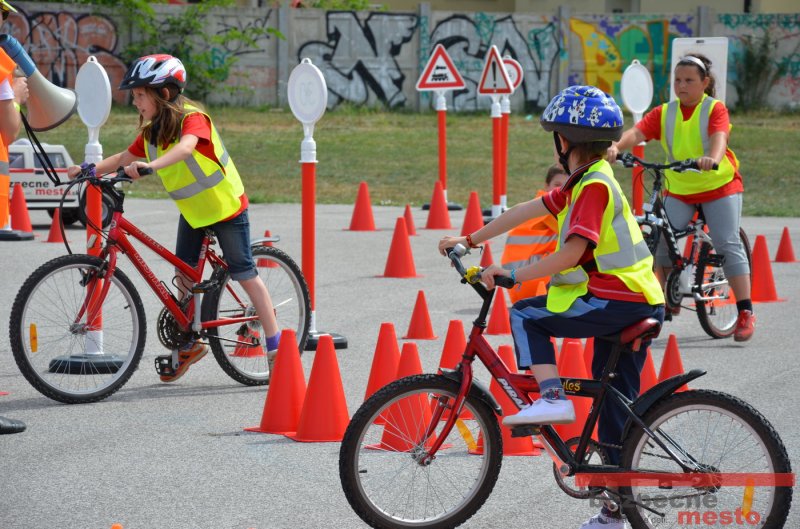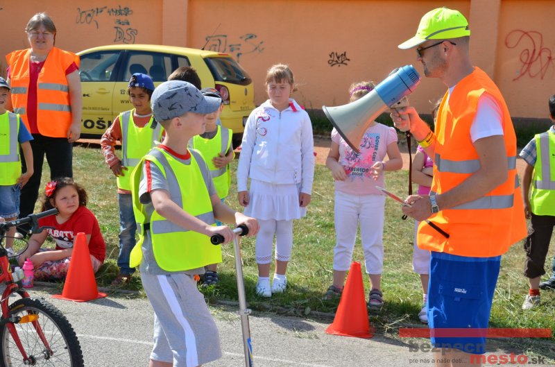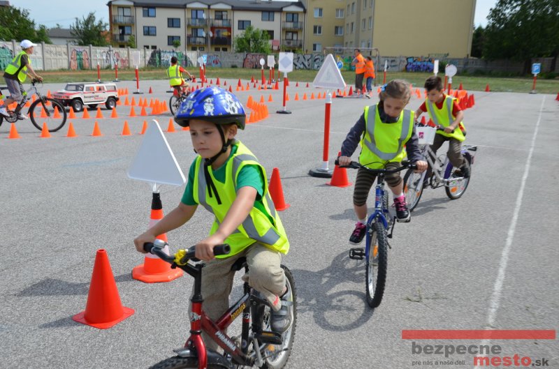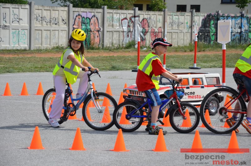 Na školskom ihrisku hneď od ranných hodín bolo rozložené prenosné dopravné ihrisko z projektu "Bezpečné mesto" , na ktorom deti na prinesených bicyklíkoch a kolobežkách pod odborným dohľadom inštruktora autoškoly HÍLEK odborne deti učil, ako sa majú bezpečne pohybovať po cestných komunikáciách.