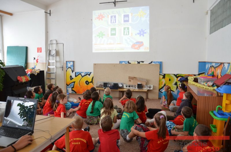 Praktickej výuke predchádzala asi hodinová teória od učiteliek, ktoré s deťmi za pomoci odborného softvéru prebrali základné pravidlá cestnej premávky a dopravné značky.