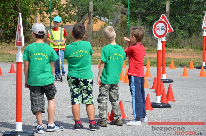 Sereď | Jeden z posledných dní školského roka využili žiaci a žiačky prvého stupňa (1 až 4 ročník - 8 tried, čo je asi 160 žiakov) ZŠ na Komenského ulici v Seredi na prevenciu z oblasti bezpečnosti na cestách. Sú tu prázdniny a deťom budú oveľa častejšie ako počas roka hroziť úrazy a nebezpečenstvá spojené práve s dopravou.