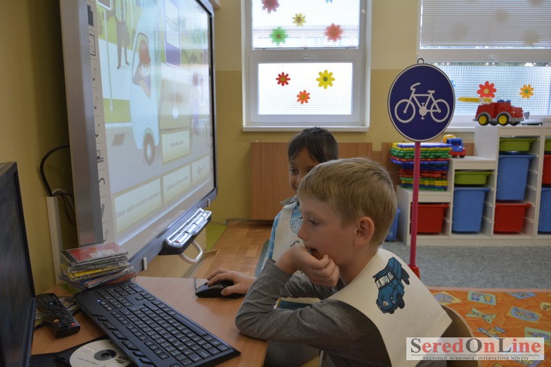 Sereď / V dnešné predpoludnie bolo mobilné dopravné ihrisko projektu Bezpečné mesto skutočne naplno využité. Dopravnú výchovu mali možnosť na ňom absolvovať aj preškoláci materskej školy Komenského v budove "B". O tom, že dopravné značky nie sú im cudzie nás presvedčili hneď v úvode. Za pomoci pani učiteľky si znalosti o bezpečnom správaní na cestách zopakovali v teoretickej časti. Správne odpovede na otázky pani učiteľky len tak "sypali ako z rukáva". Potom mohla nasledovať aj jazda v plnej premávke po cestičkách mobilného dopravného ihriska. Tu si precvičili dopravné predpisy, ktoré musia dodržiavať ako chodci tak i dopravné prostriedky. Samozrejme ako správni vodiči nesmú jazdiť bez vodičáka, preto aj oni dostali "detské vodičáky" so svojim menom od projektu Bezpečné mesto.
