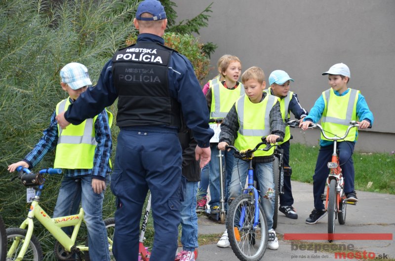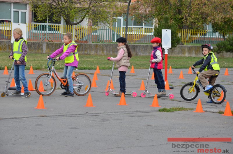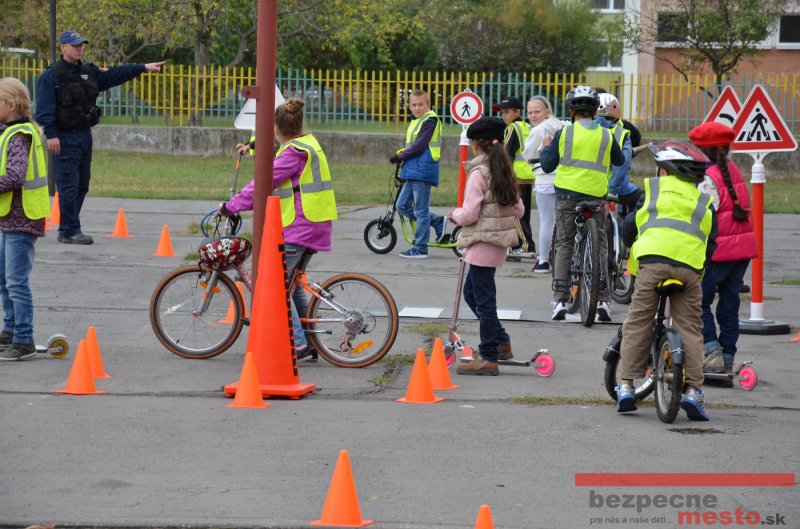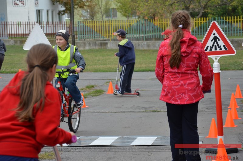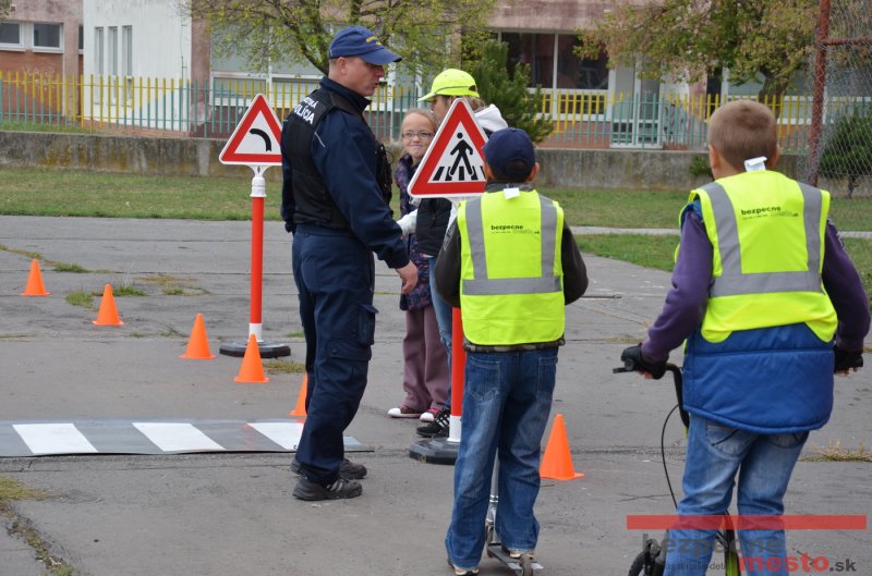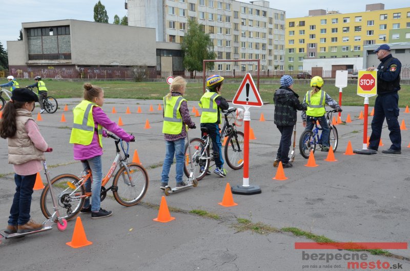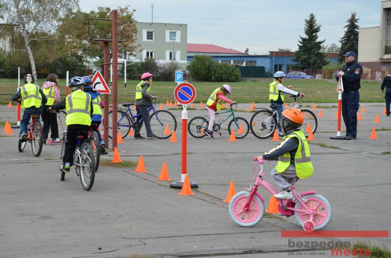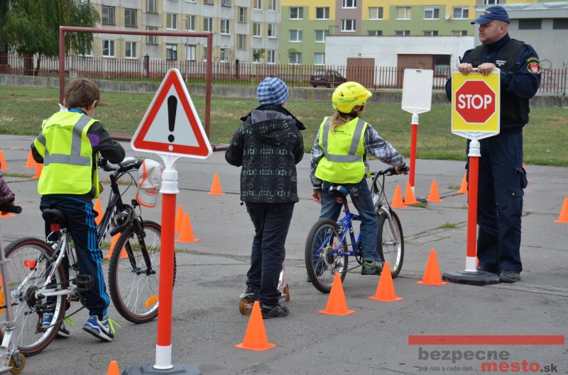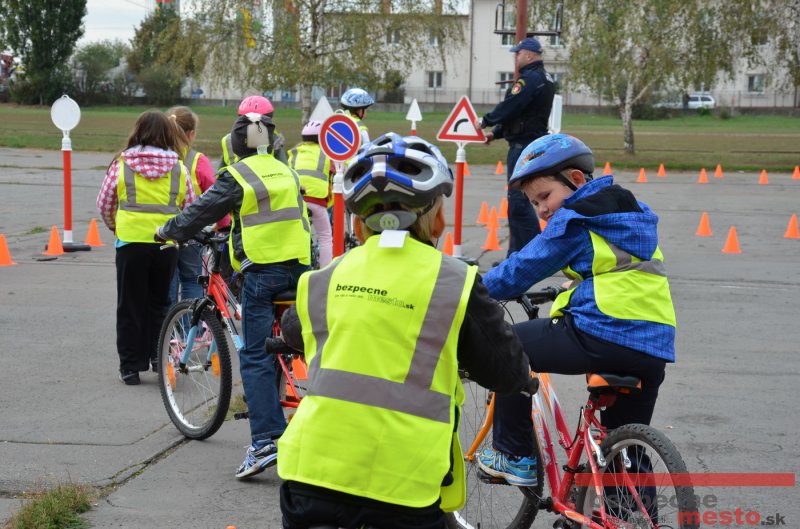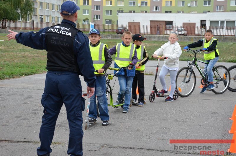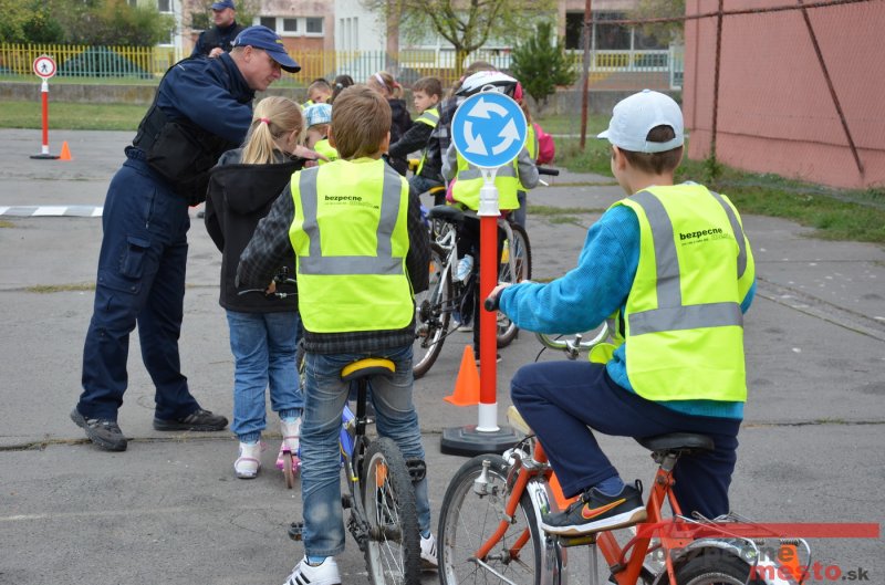 Sereď | Jeden z posledných príjemne teplých dní tohto roka využili aj žiaci základnej školy J. Fándlyho na to, aby si zopakovali pravidlá cestnej premávky. Do školy si priniesli bicykle a kolobežky, s ktorými asi v pol hodinových intervaloch postupne vyšli na ihrisko, kde ich čakali dopravné značky prenosného dopravného ihriska projektu Bezpečné mesto. Odborne sa deťom venovali dvaja policajti Mestskej polície Miloš Marcinkech a Radovan Horváth, ktorí deťom podrobne vysvetlili ako sa majú správať na ceste, funkciu každej dopravnej značky a nasimulovaných dopravných situácií.