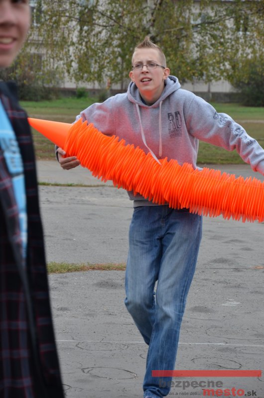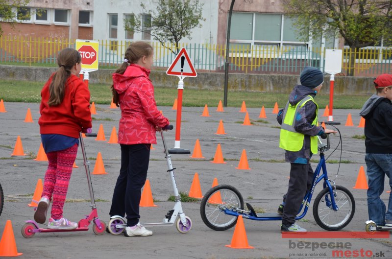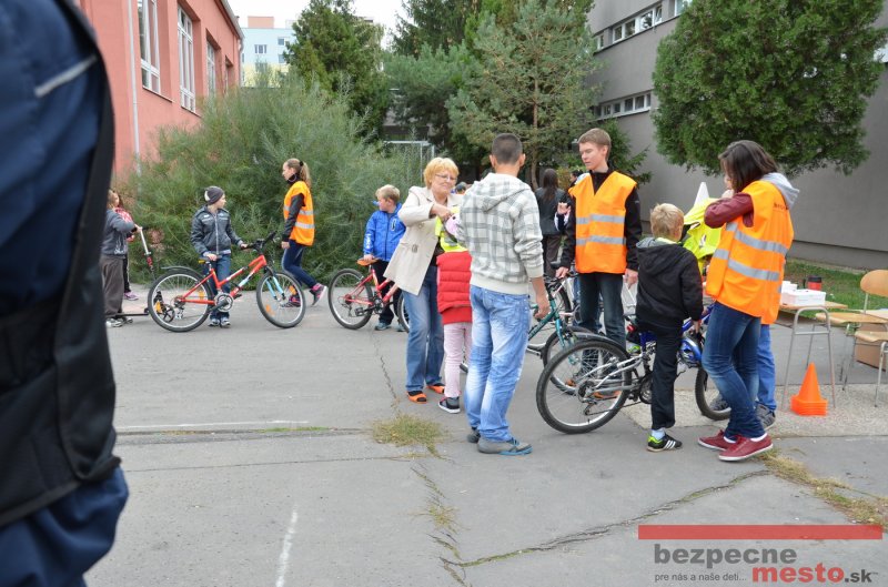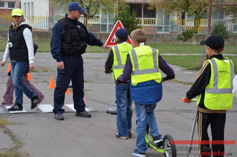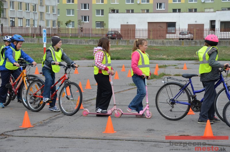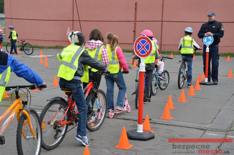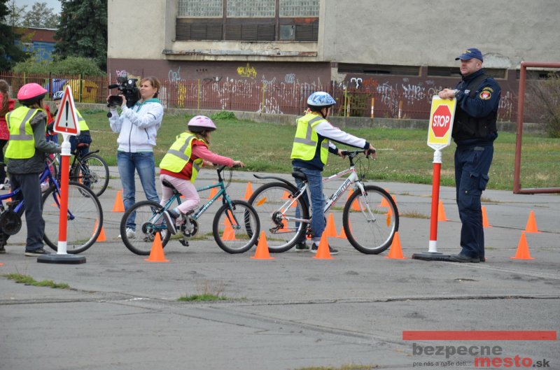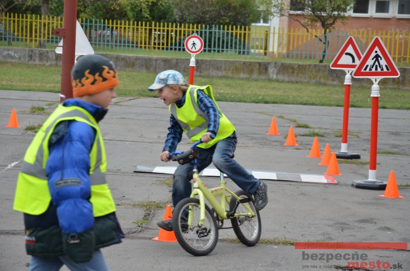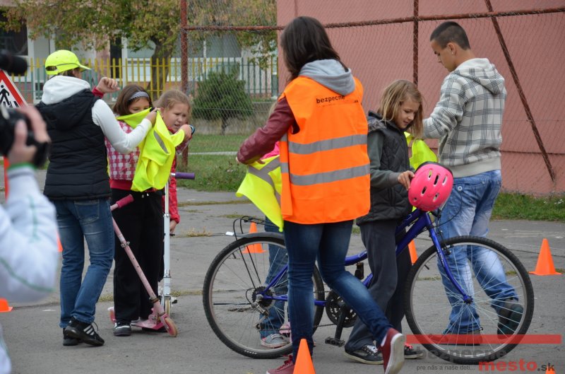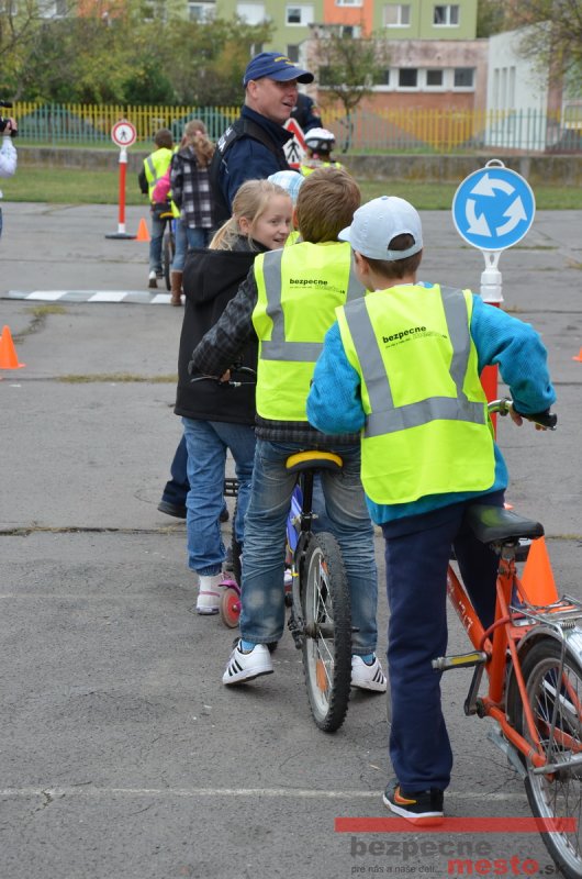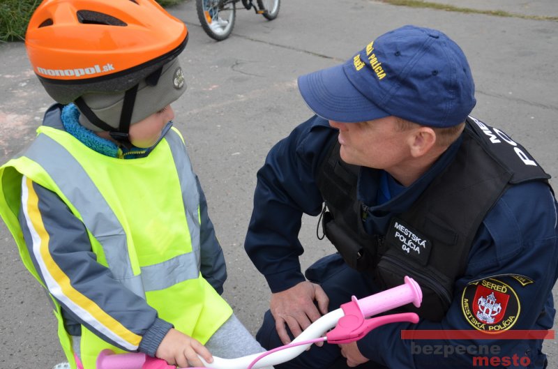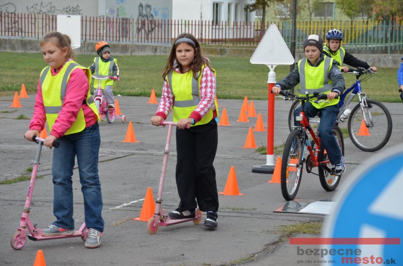 Sereď | Jeden z posledných príjemne teplých dní tohto roka využili aj žiaci základnej školy J. Fándlyho na to, aby si zopakovali pravidlá cestnej premávky. Do školy si priniesli bicykle a kolobežky, s ktorými asi v pol hodinových intervaloch postupne vyšli na ihrisko, kde ich čakali dopravné značky prenosného dopravného ihriska projektu Bezpečné mesto. Odborne sa deťom venovali dvaja policajti Mestskej polície Miloš Marcinkech a Radovan Horváth, ktorí deťom podrobne vysvetlili ako sa majú správať na ceste, funkciu každej dopravnej značky a nasimulovaných dopravných situácií.