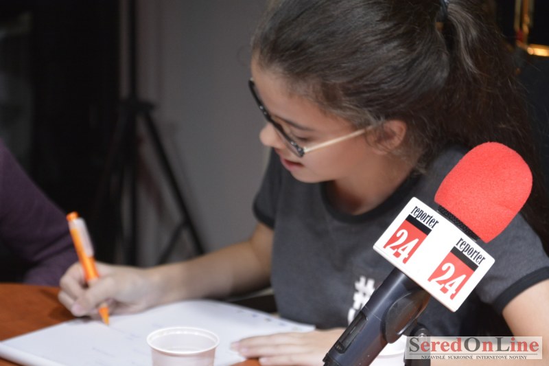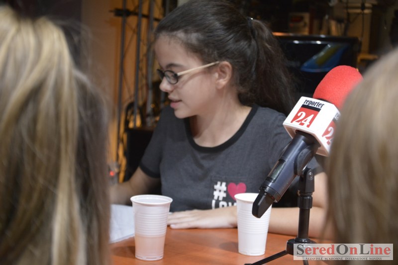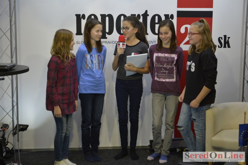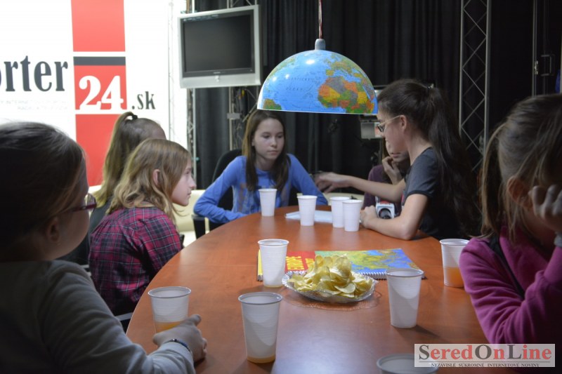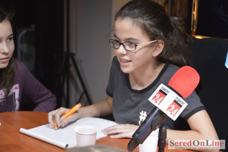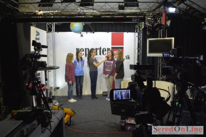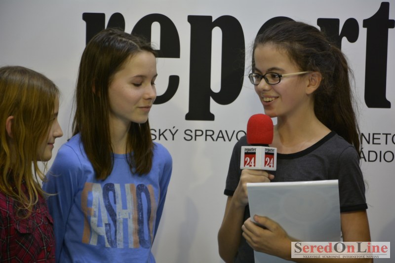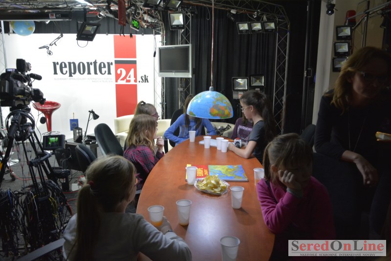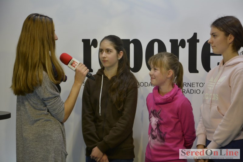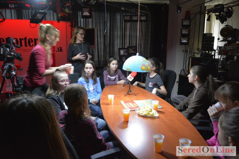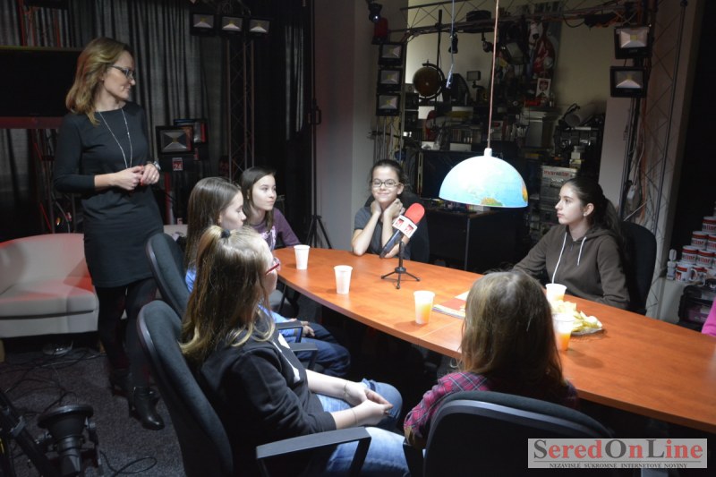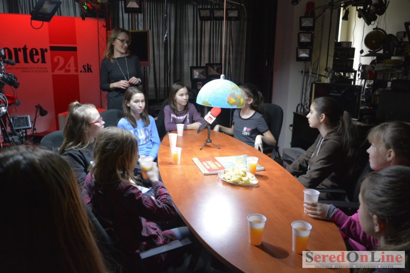 Príjemné popoludnie sme v štúdiu strávili spolu s pani učiteľkou Jankou Gabrišovou a týmito žiačkami krúžku MLADÍ REPORTÉRI : Renata Szabová, 9.C; Janka Kramárová, 8.A; Lenka Ostrčilová, 8.B; Katarína Plaštiaková, 8.B; Eva Mančíková, 7.C; Nina Haberlandová, 6.A; Tamara Haberlandová, 6.A, Estell Adamková, 6.A; Karolína Lukáčová, 6.A; Kristína Sopčáková, 5.C, Soňa Tóthová, 5.C.